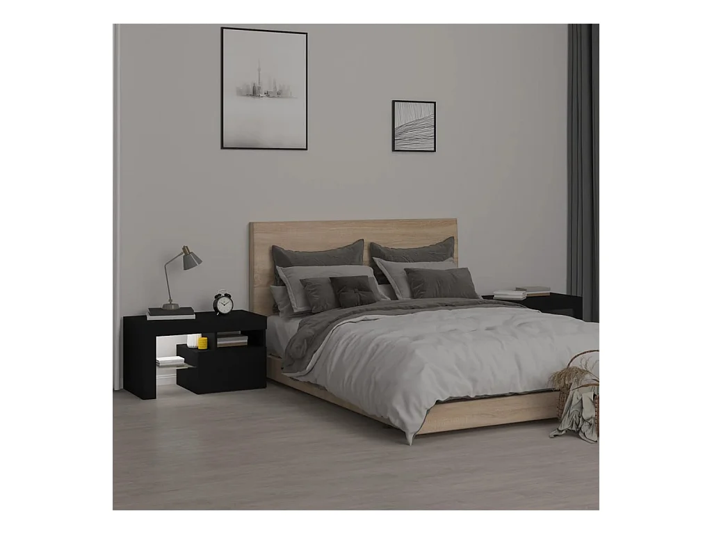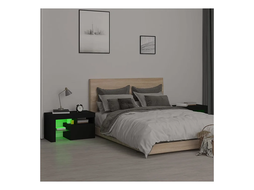 Lot de 2 Tables de chevet et lumières LED noir bois d'ingénierie FR20905
