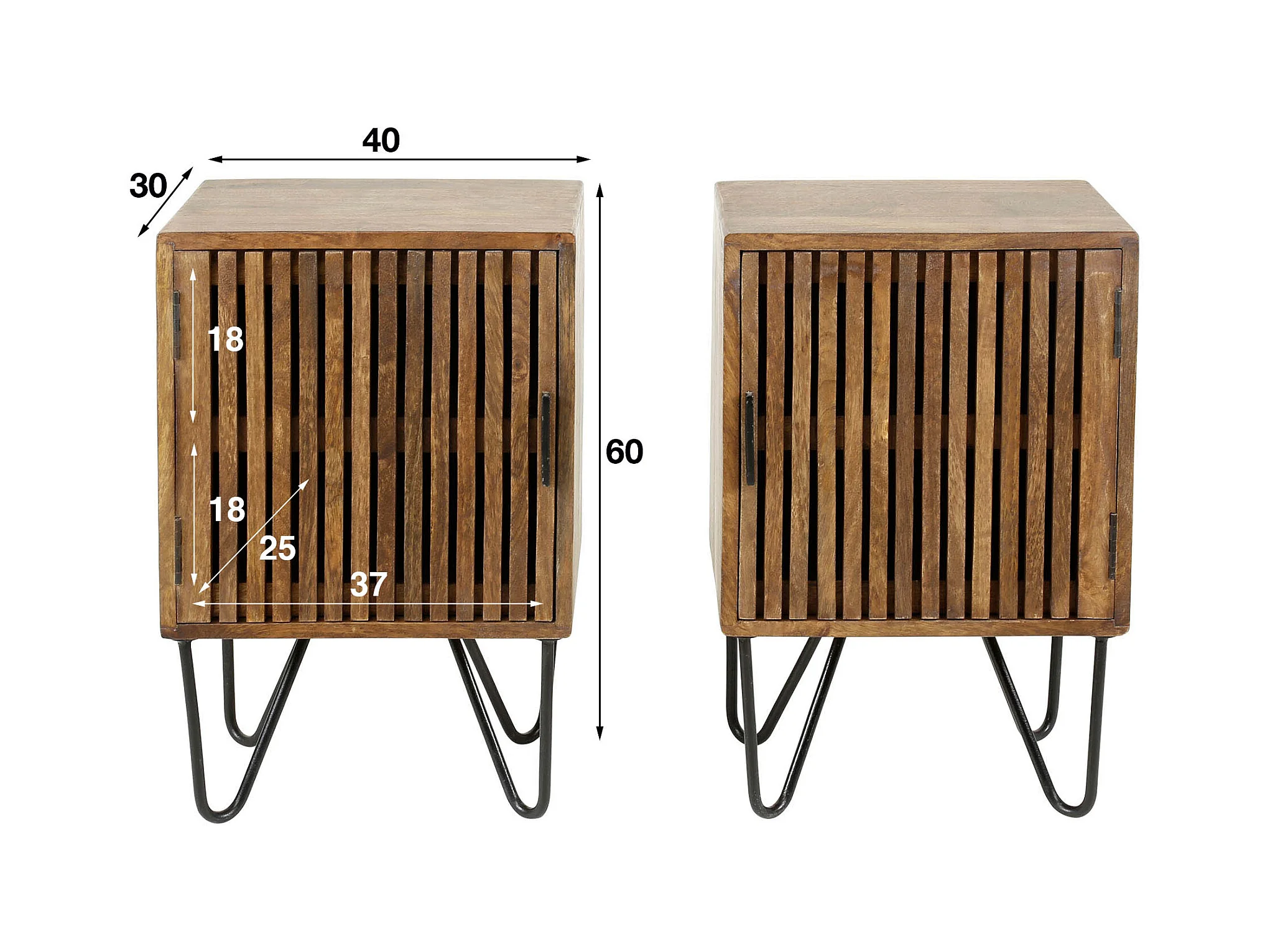 Lot de 2 tables de chevet Hoyz Tweak - Bois de manguier massif - Marron - 40 x 30 x 60 cm