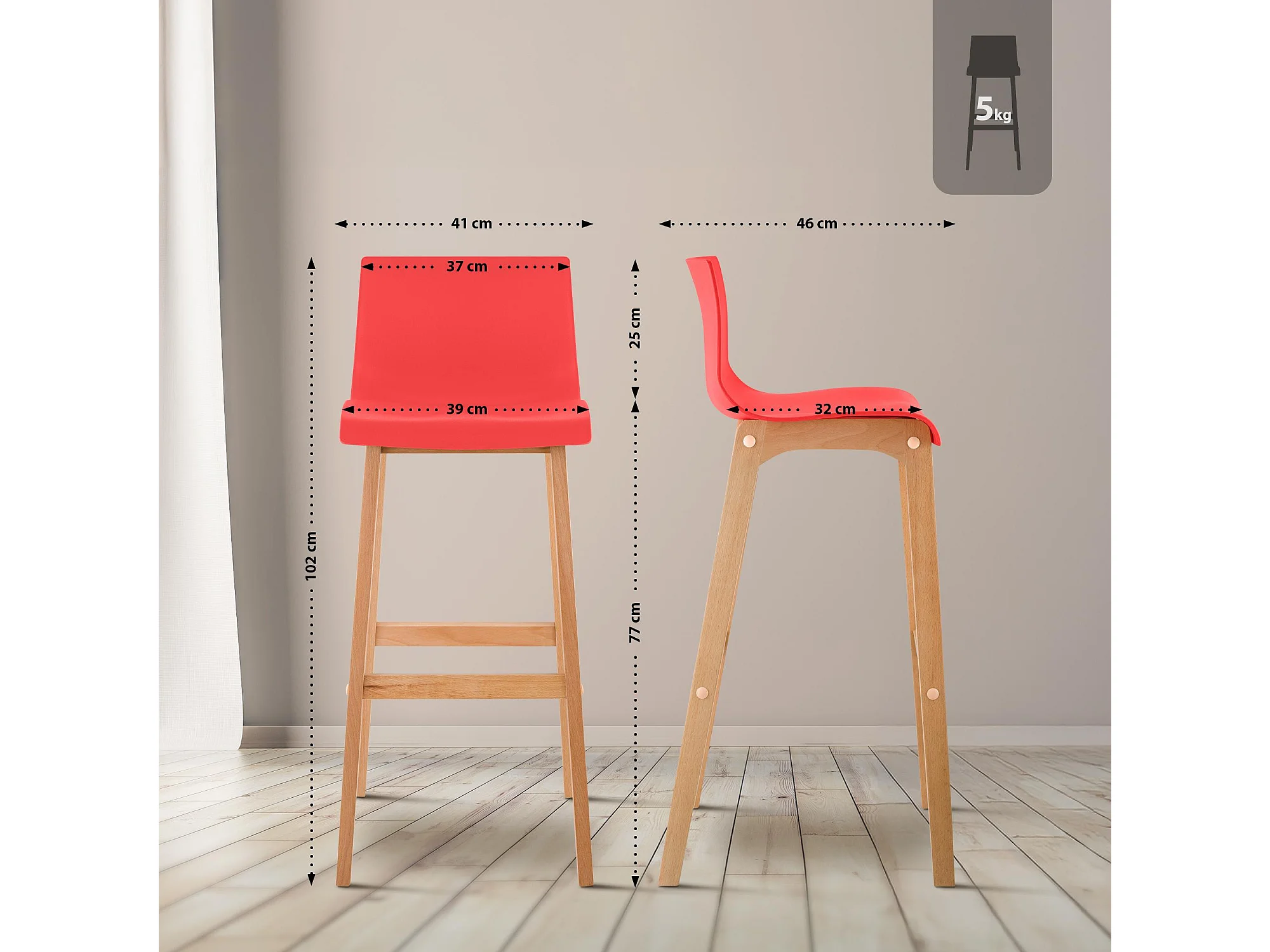 Lot de 2 Tabouret de bar - Bois - Rouge - Hover
