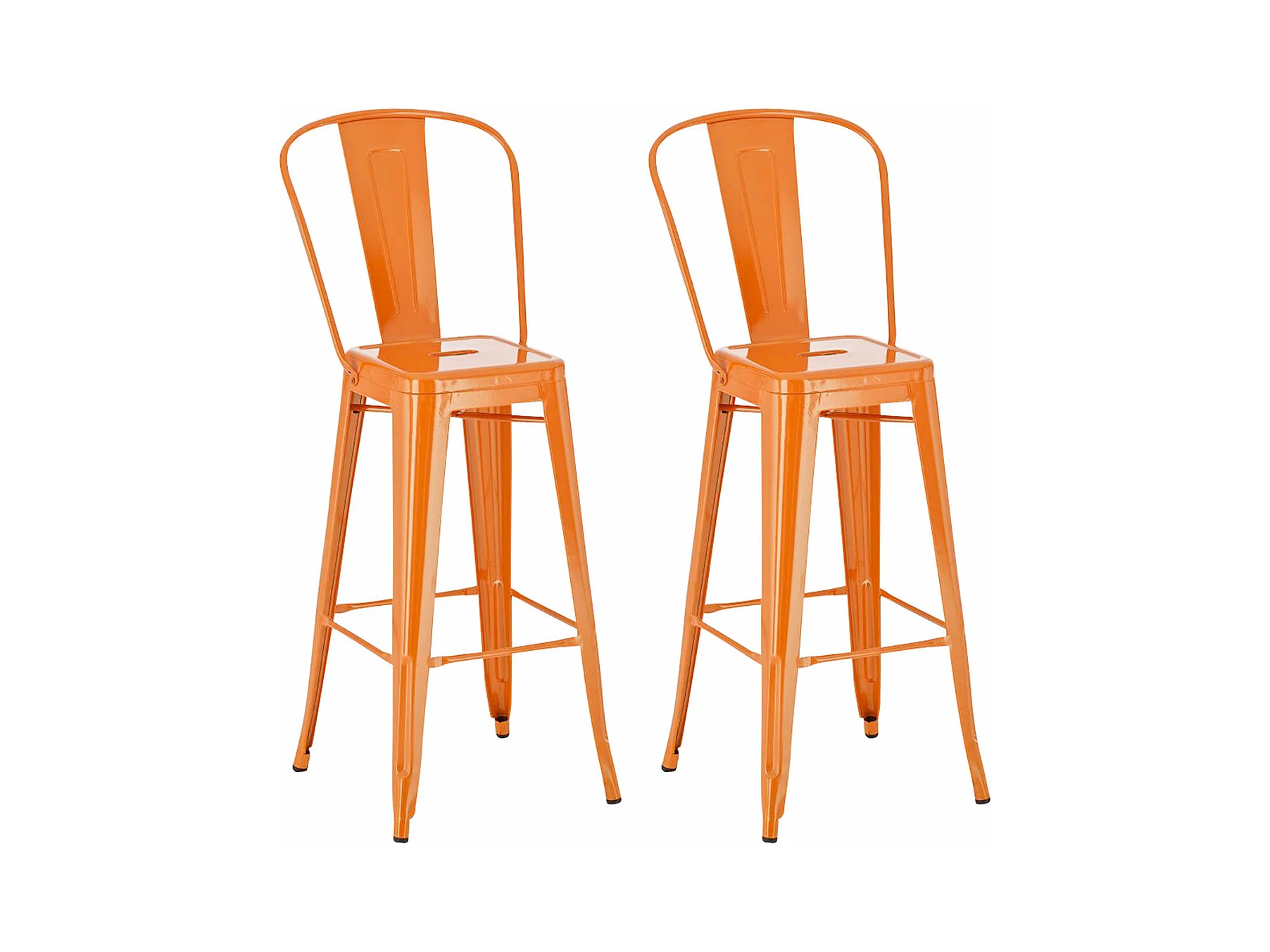 Tabouret haut industriel avec dossier acier brillant Kalax 76cm --Couleur Orange