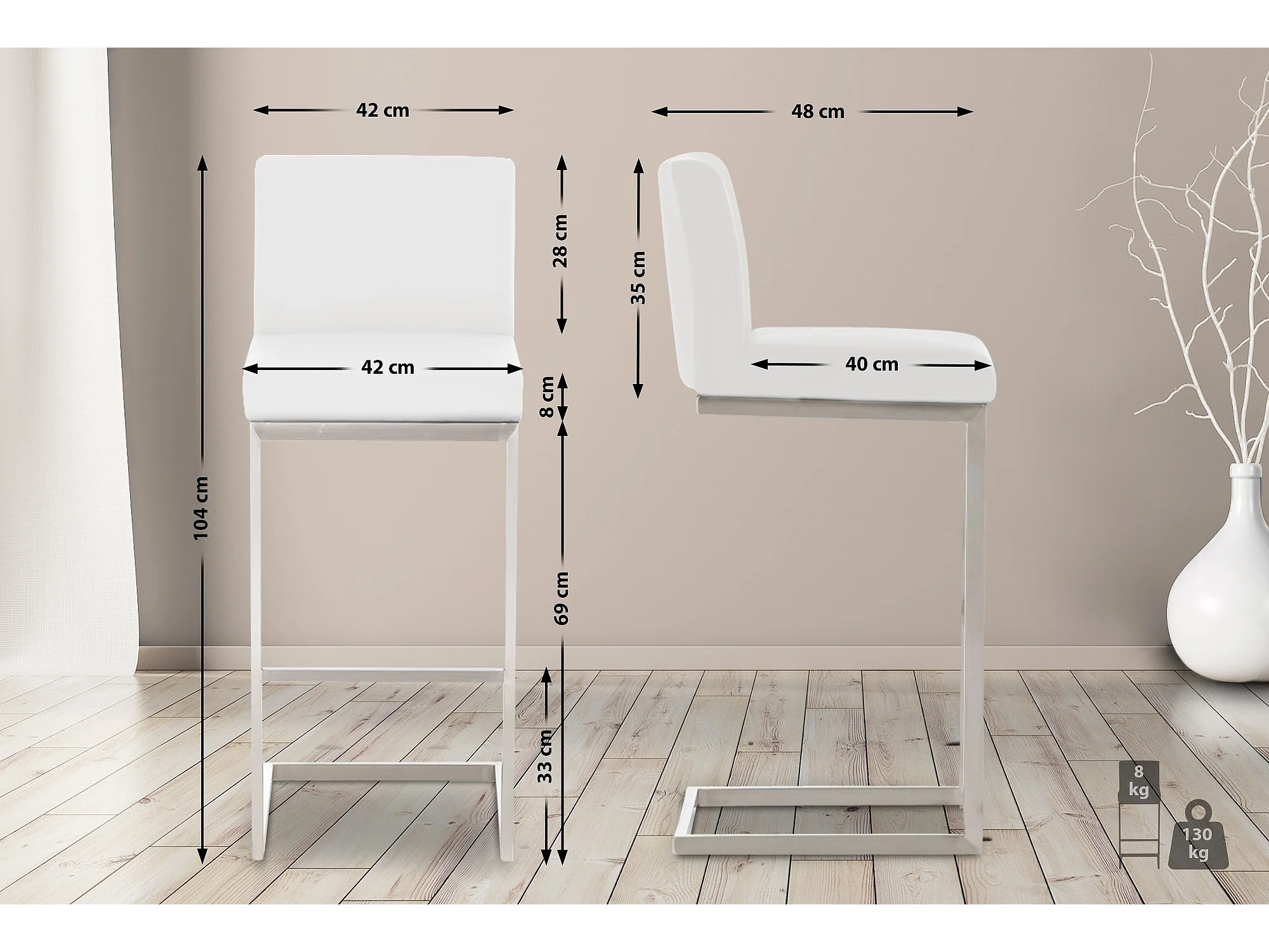 Lot de 2 Tabouret de bar - Similicuir - Blanc - Paros