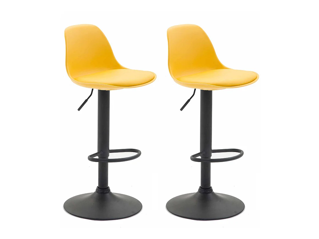 Lot de 2 Tabouret de bar - Similicuir & Métal - Jaune - Kiel