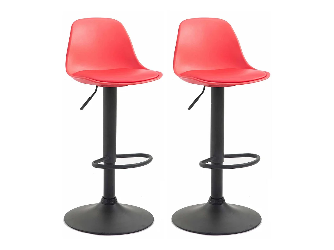 Lot de 2 Tabouret de bar - Similicuir (PVC) & Métal noir mat - Rouge - Braga