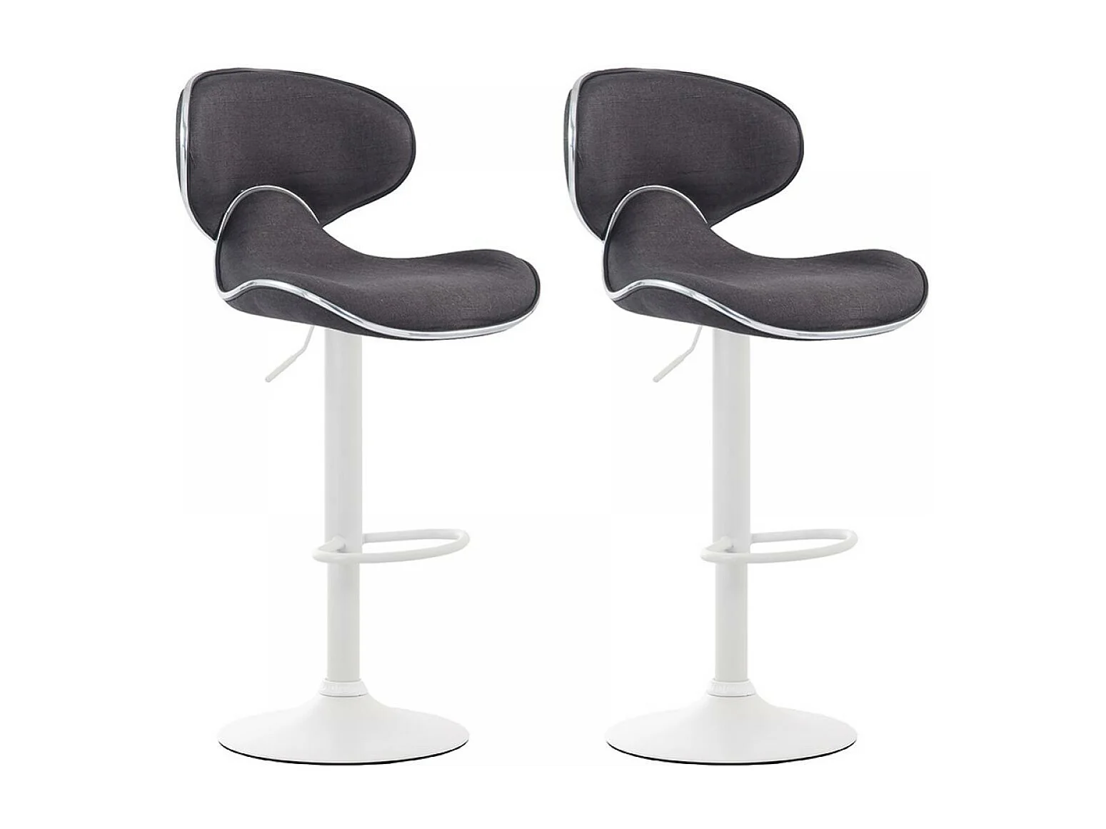 Lot de 2 Tabouret de bar - Tissu & Blanc - Gris foncé - Damaso