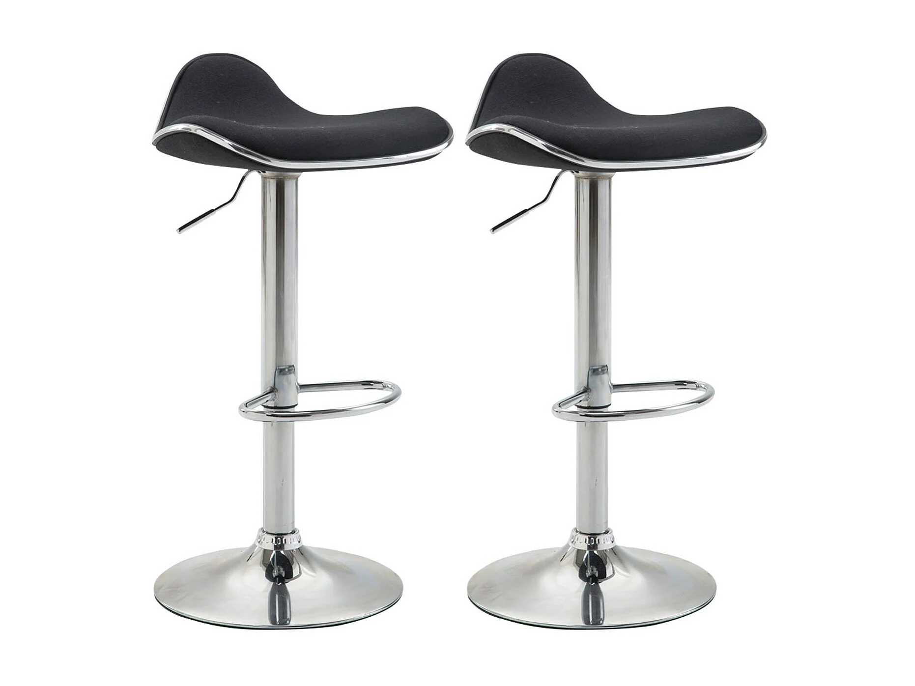Lot de 2 Tabouret de bar - Tissu & Métal chromé - Noir - Shanghai