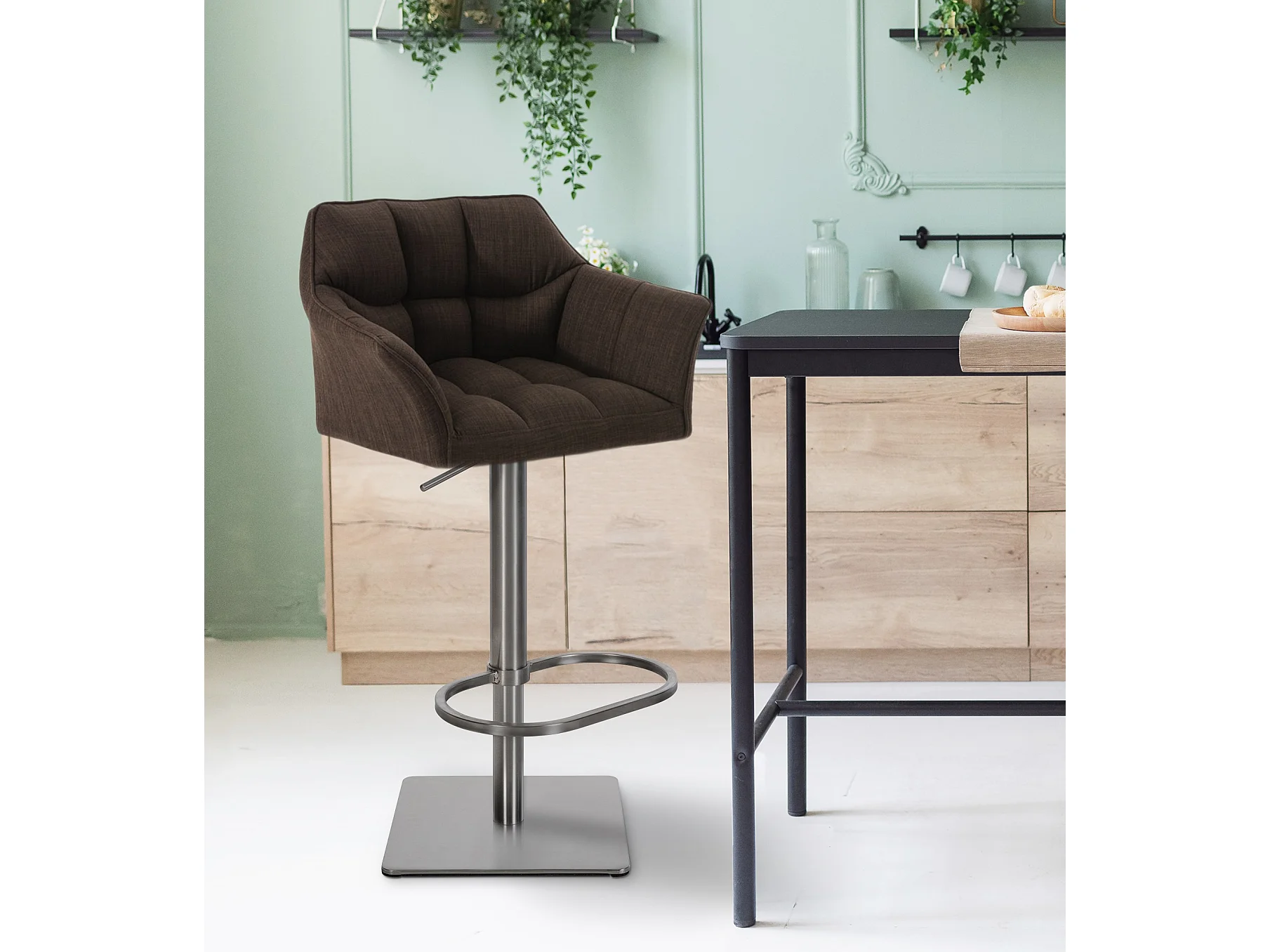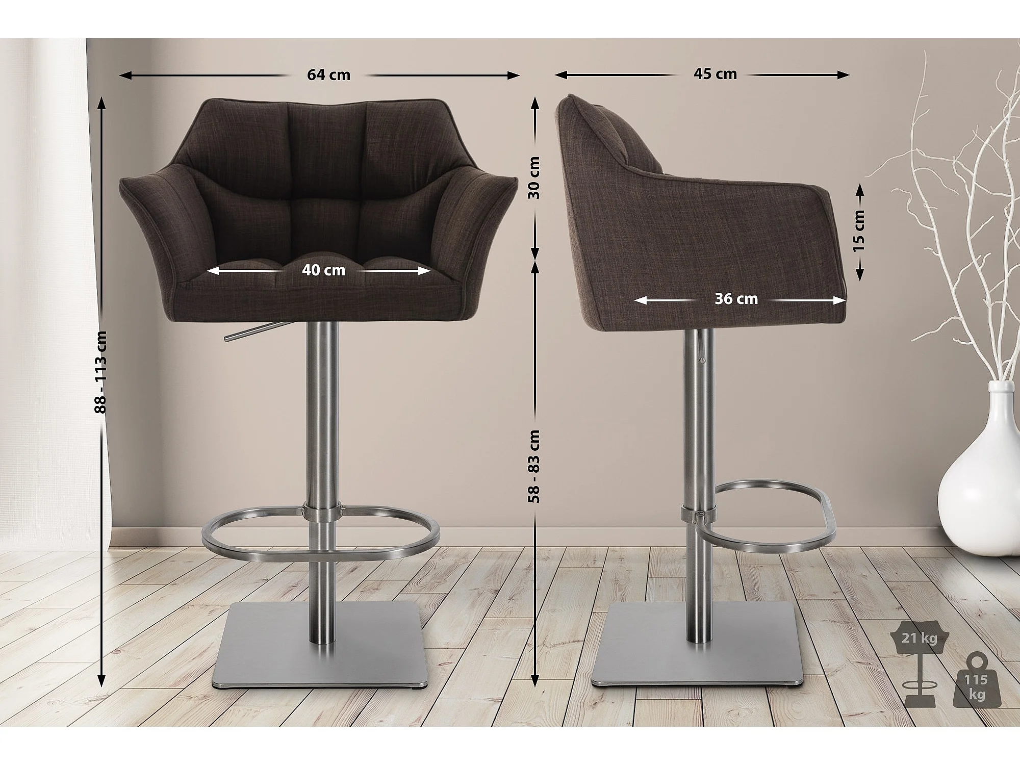 Lot de 2 Tabouret de bar - Tissu & Acier inoxydable - Marron - Damaso