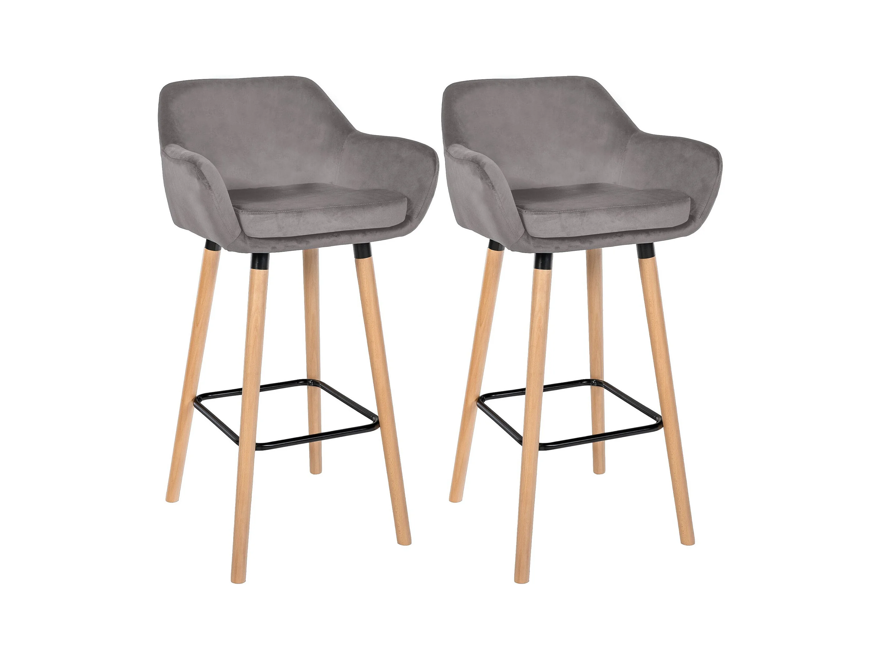 Lot de 2 Tabouret de bar - Velours & Bois - Gris - Metz