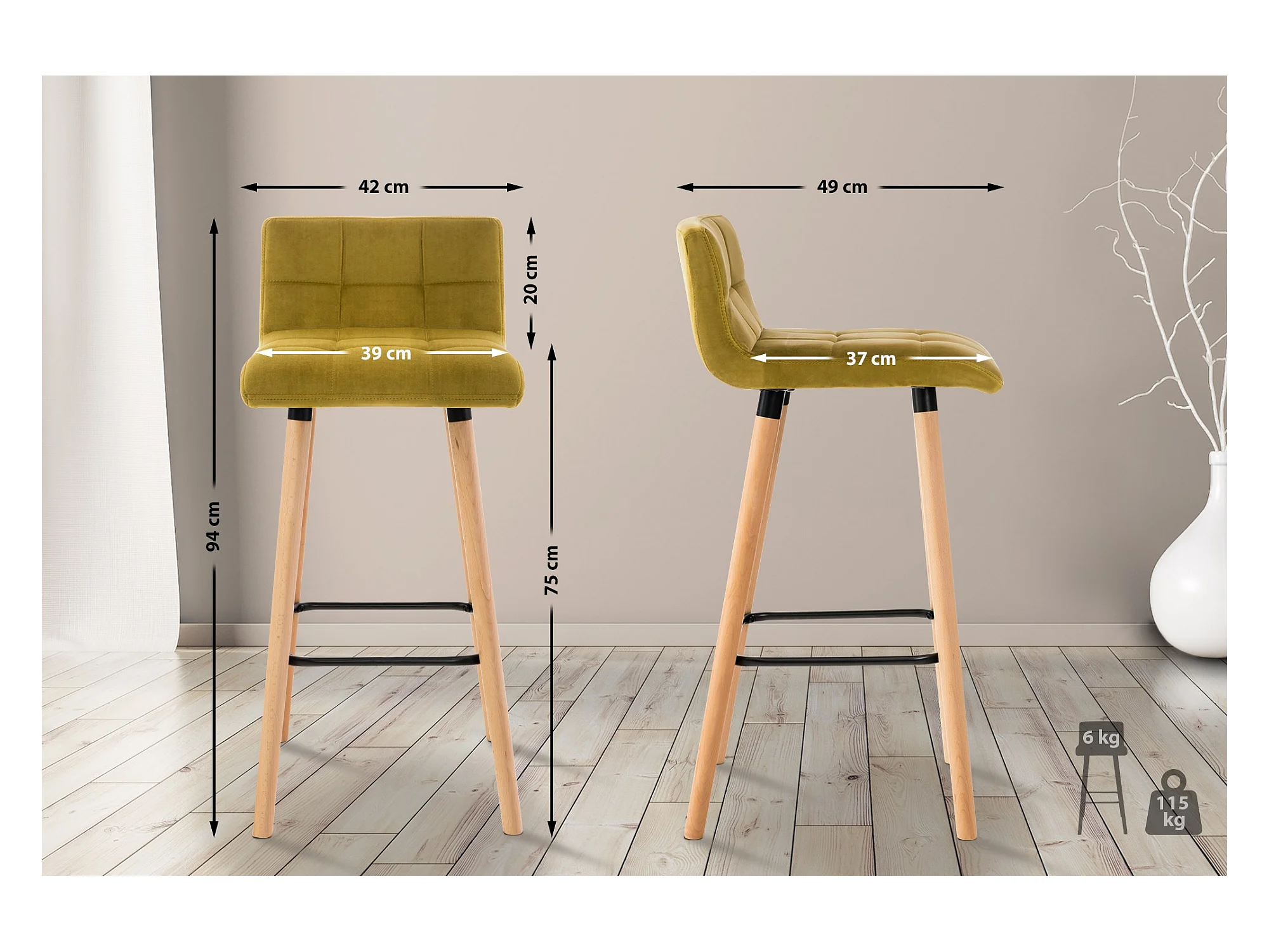 Lot de 2 Tabouret de bar - Velours & Nature - Jaune - Lincoln