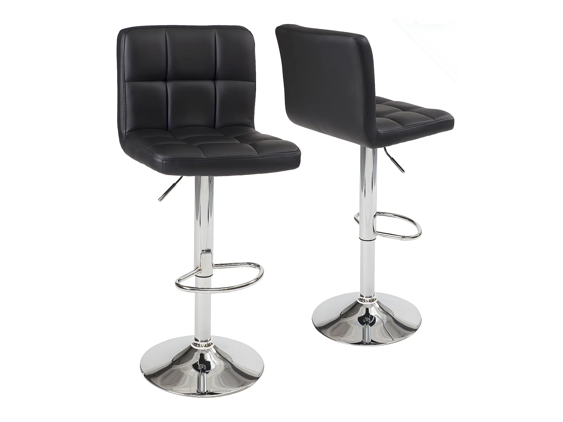 Lot 2 chaises de bar simili cuir matelassé rembourré hauteur réglable pivotant chromé SIVAN (noir)