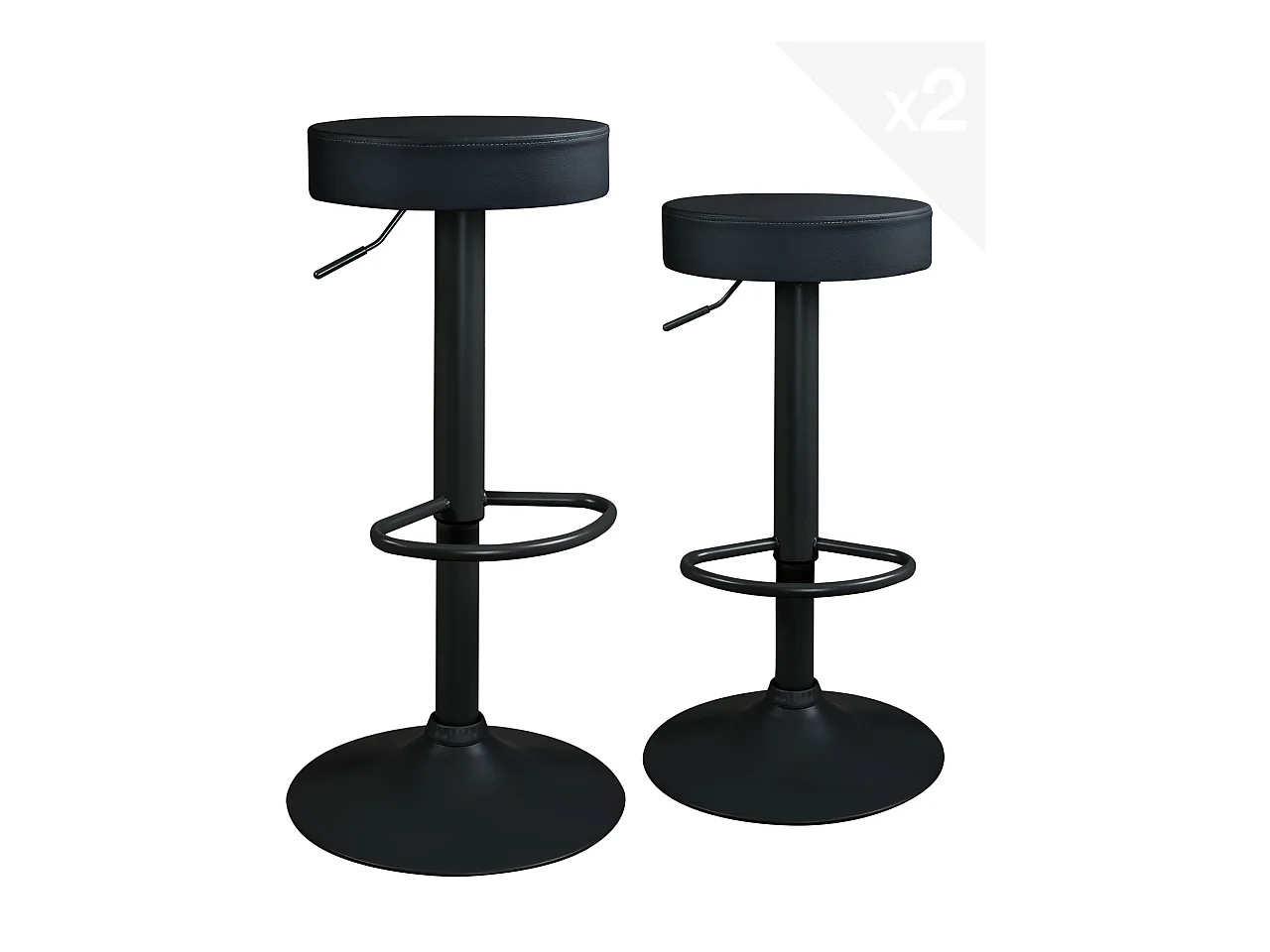 Lot 2 tabourets bar noir rond simili rembourré pivotant hauteur réglable YO (noir intégral)