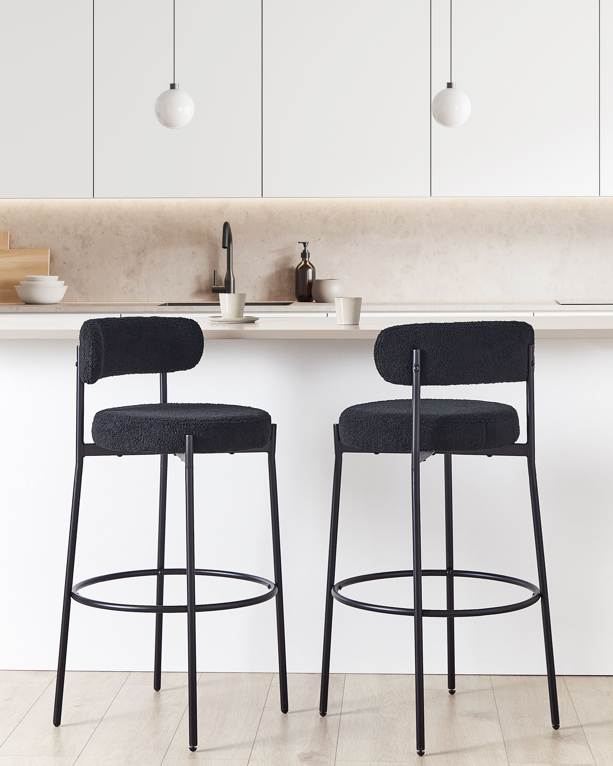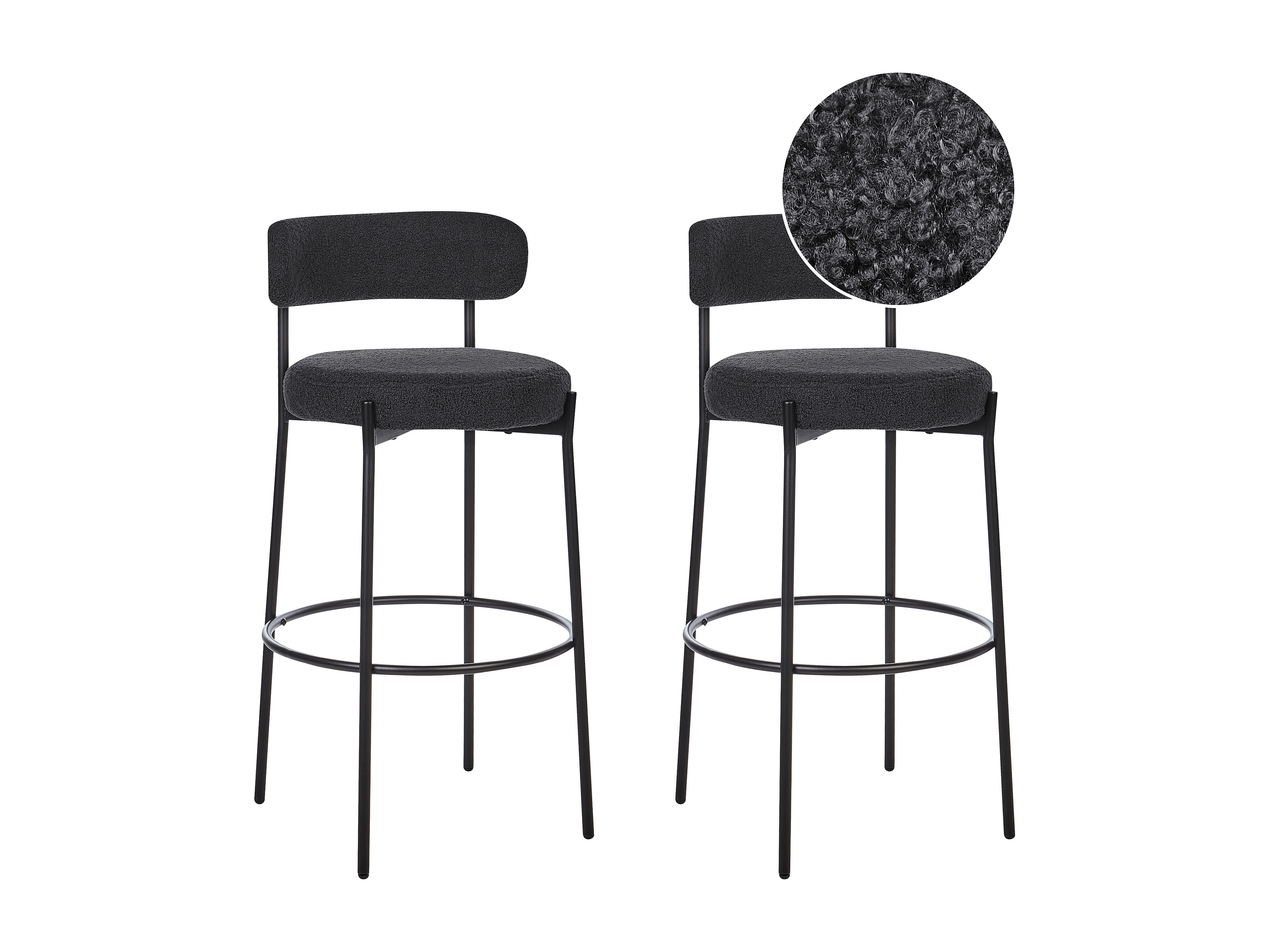 Lot de 2 chaises de bar ALLISON Bouclé Noir