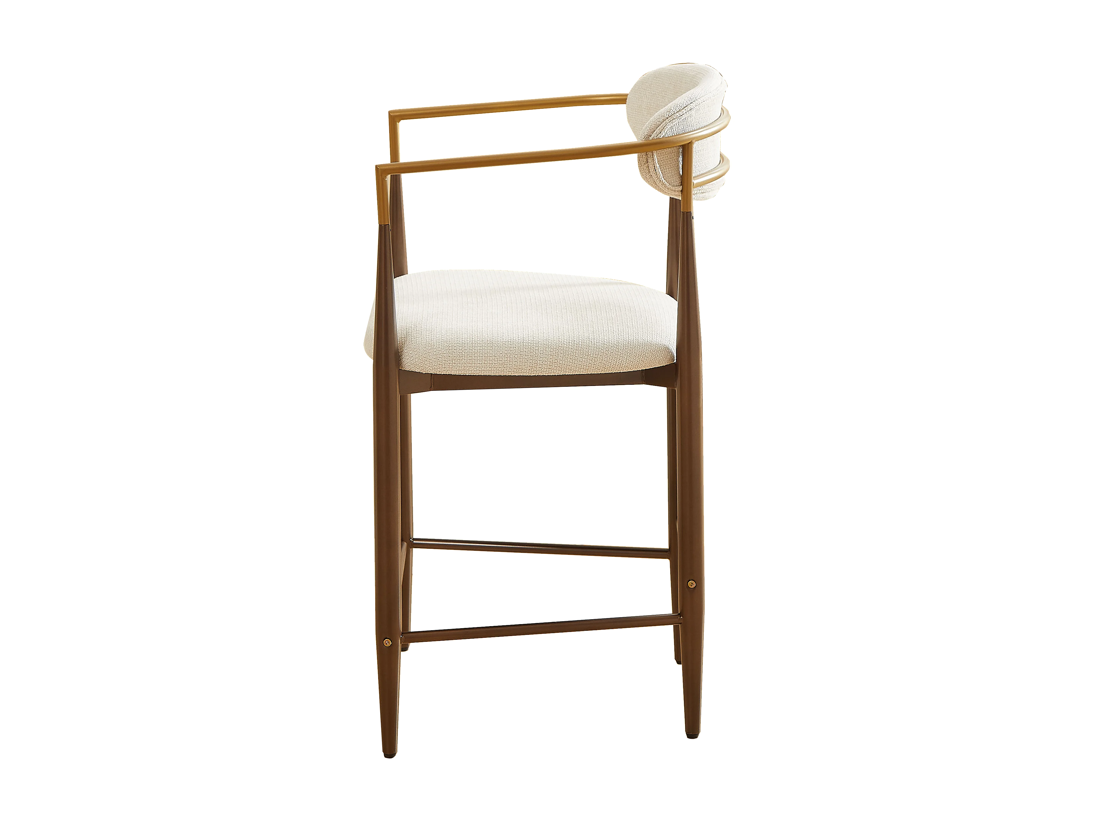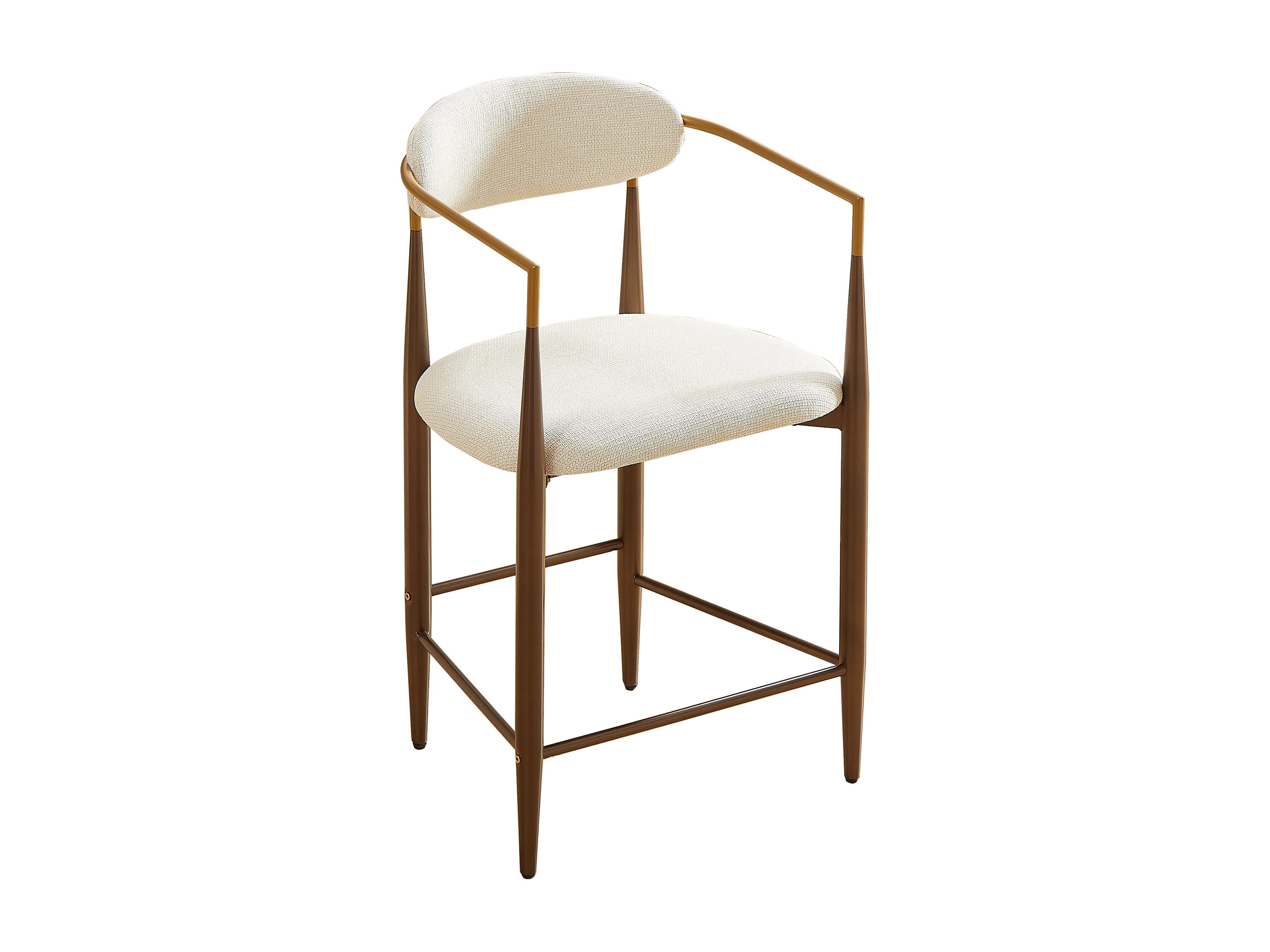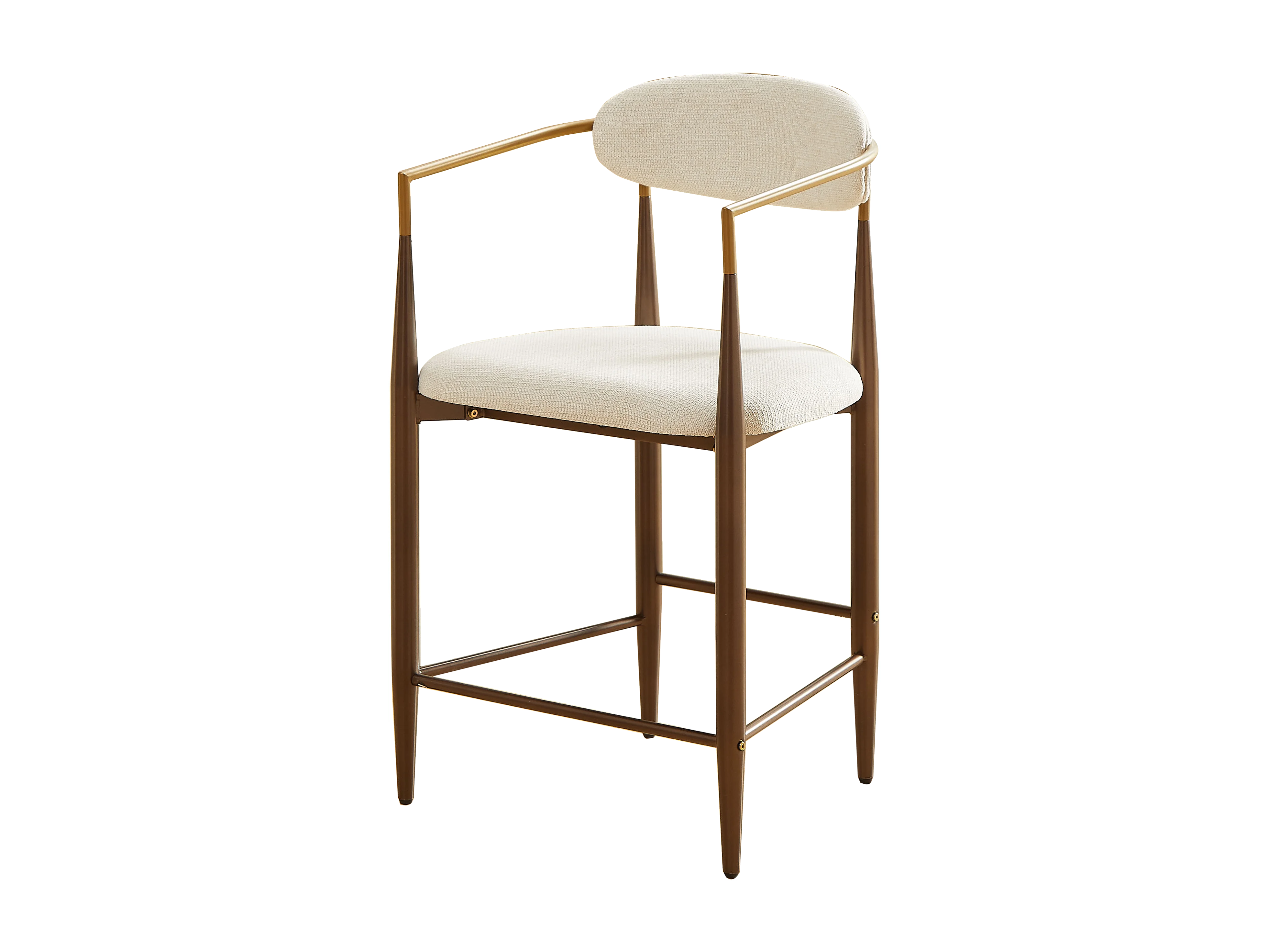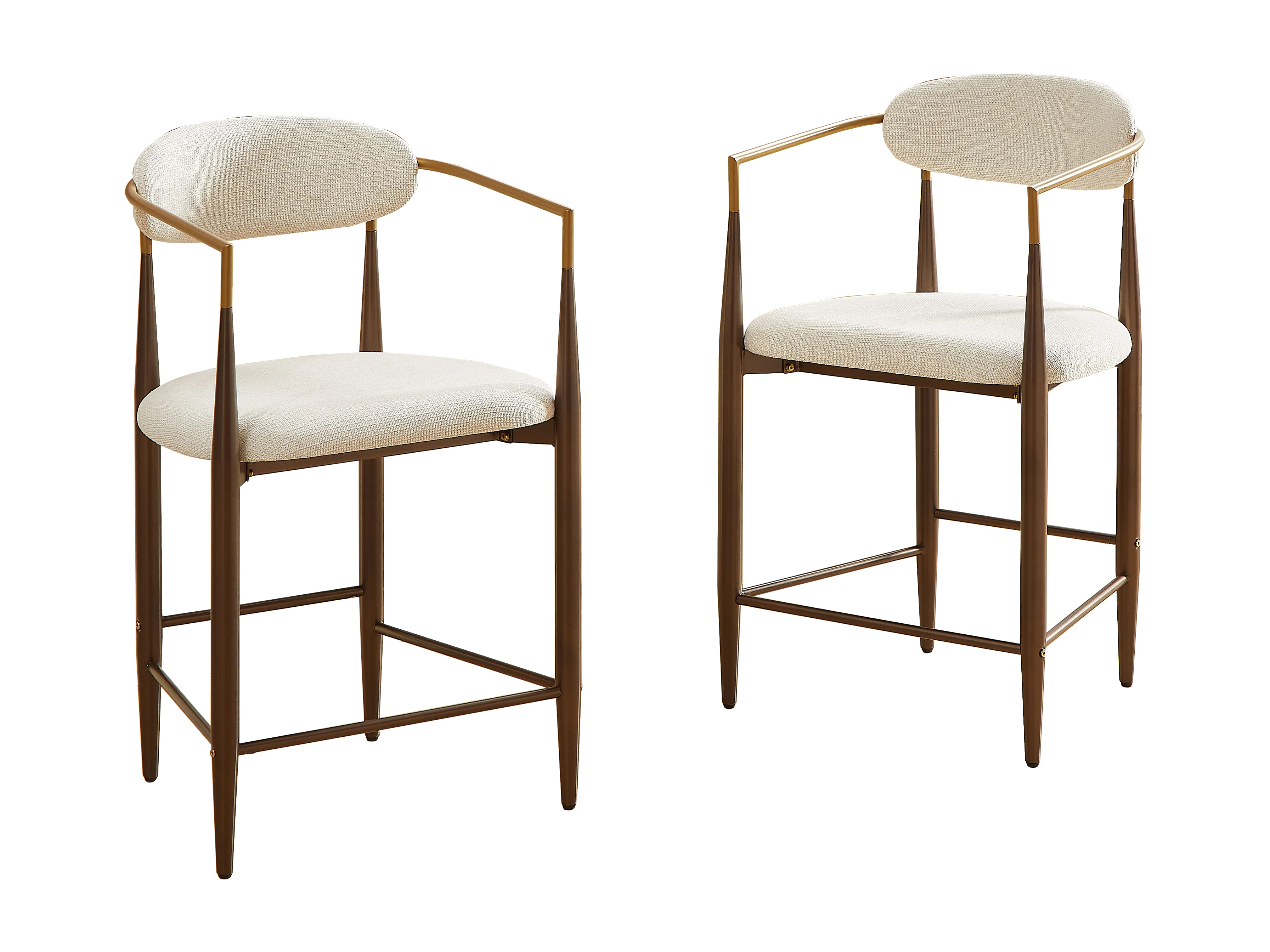 Lot de 2 tabourets de bar avec accoudoir - Tissu beige - Cadre en métal marron et or