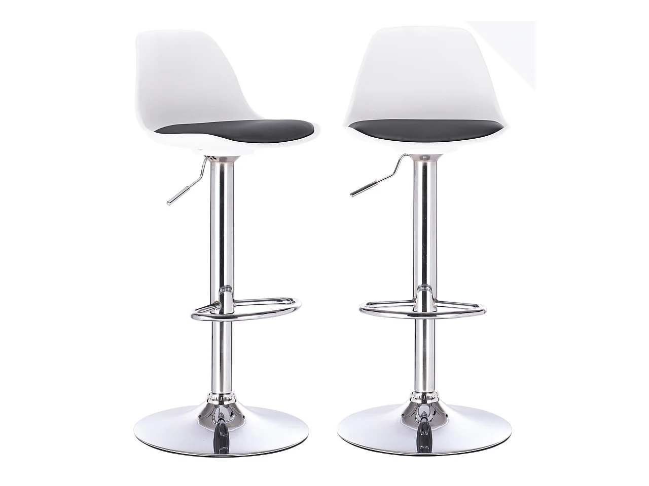 Lot 2 tabourets de bar coussin simili cuir pivotant hauteur réglable pied chrome SIG (blanc noir)