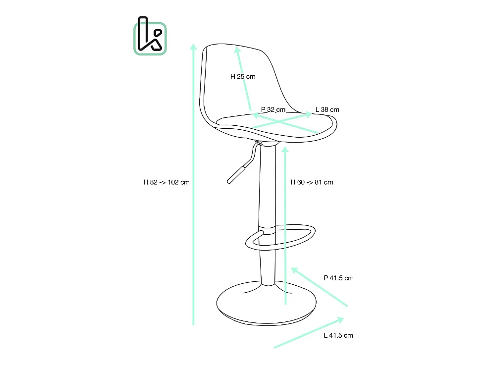 Lot 2 tabourets de bar cuisine simili cuir pivotant hauteur réglable pied noir SATI+ (Noir)