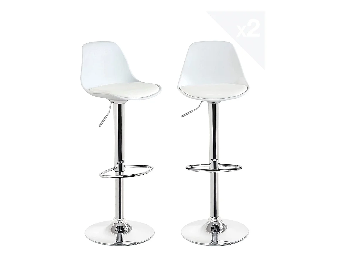 Lot 2 tabourets de bar cuisine coussin simili cuir pivotant hauteur réglable pied chrome SIG (blanc)