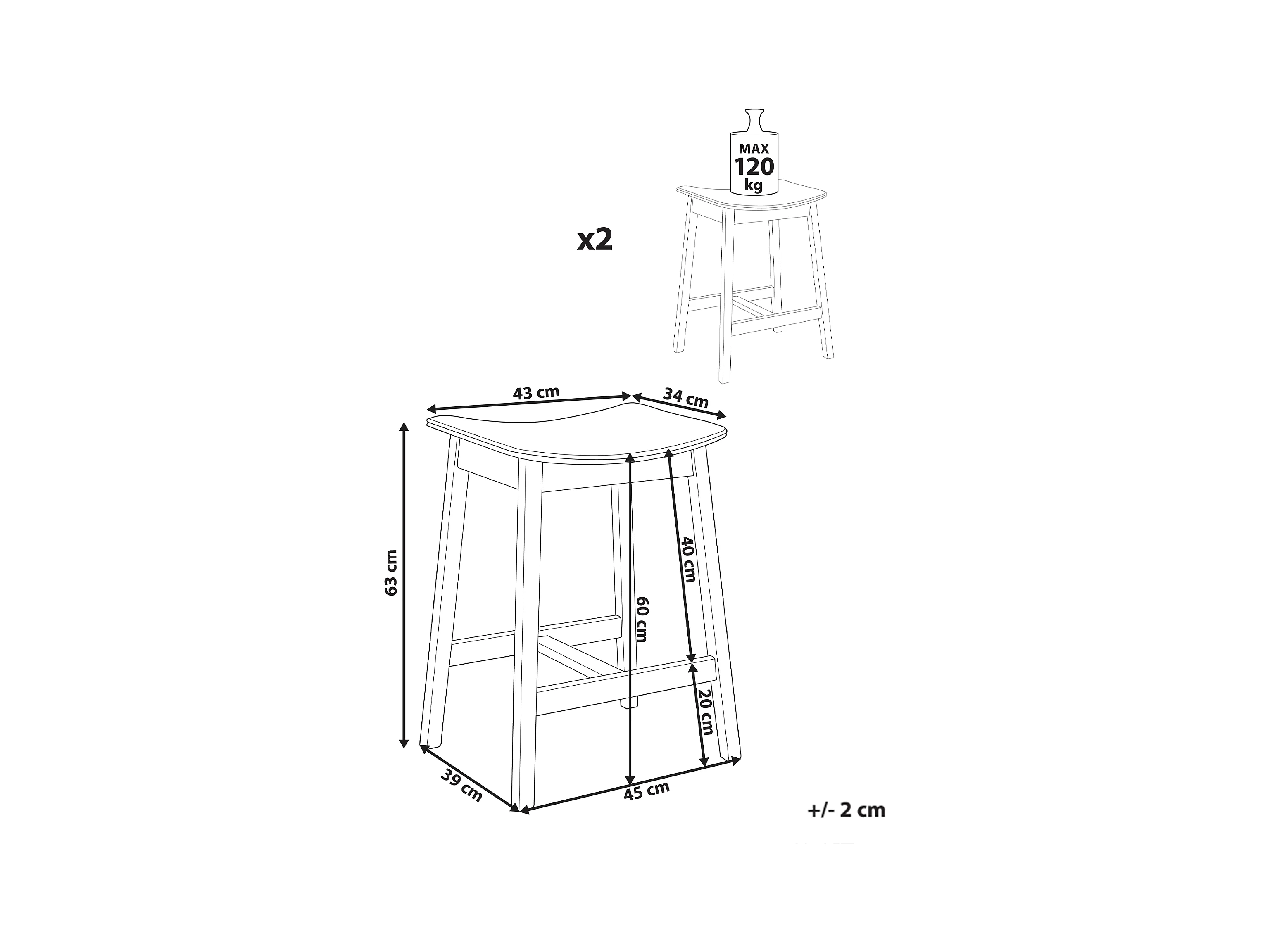 Lot de 2 tabourets de bar DIXON Bois Marron clair/gris