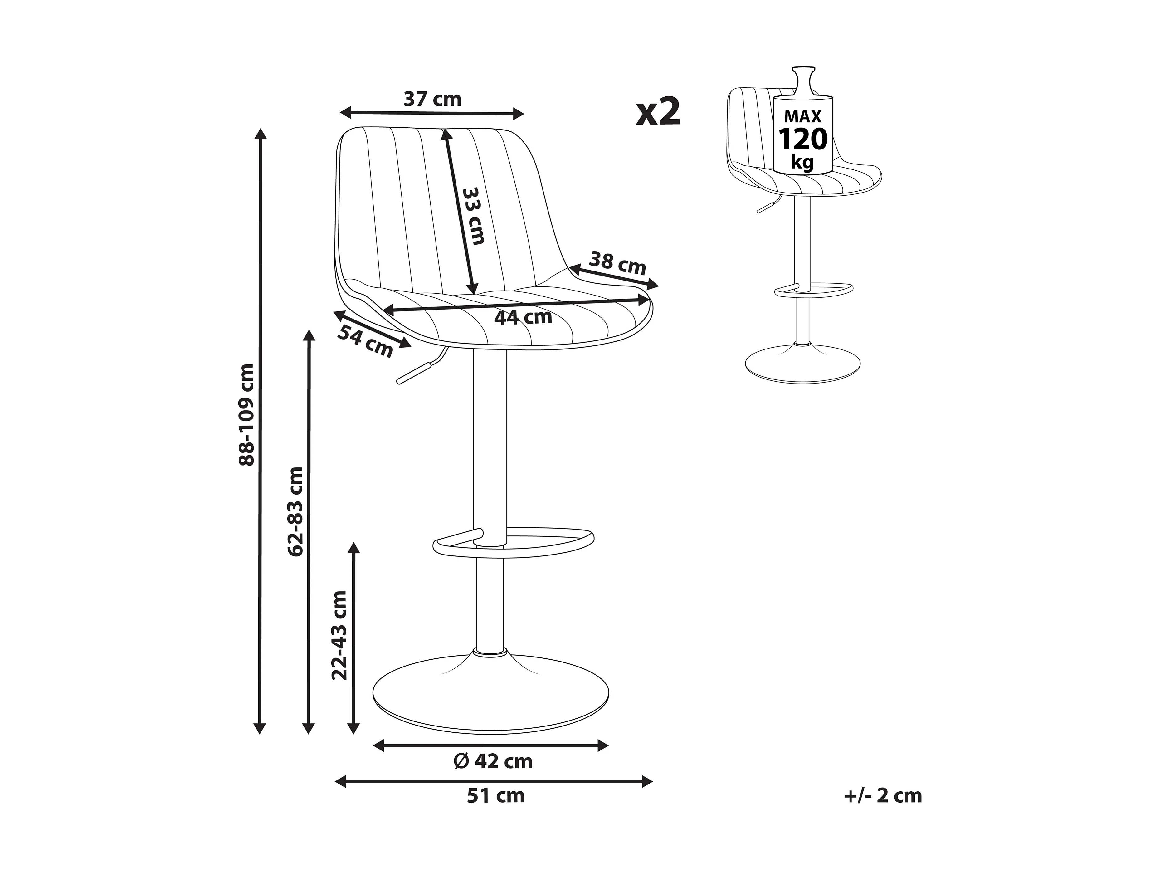 Lot de 2 chaises de bar DUBROVNIK Cuir PU Beige clair