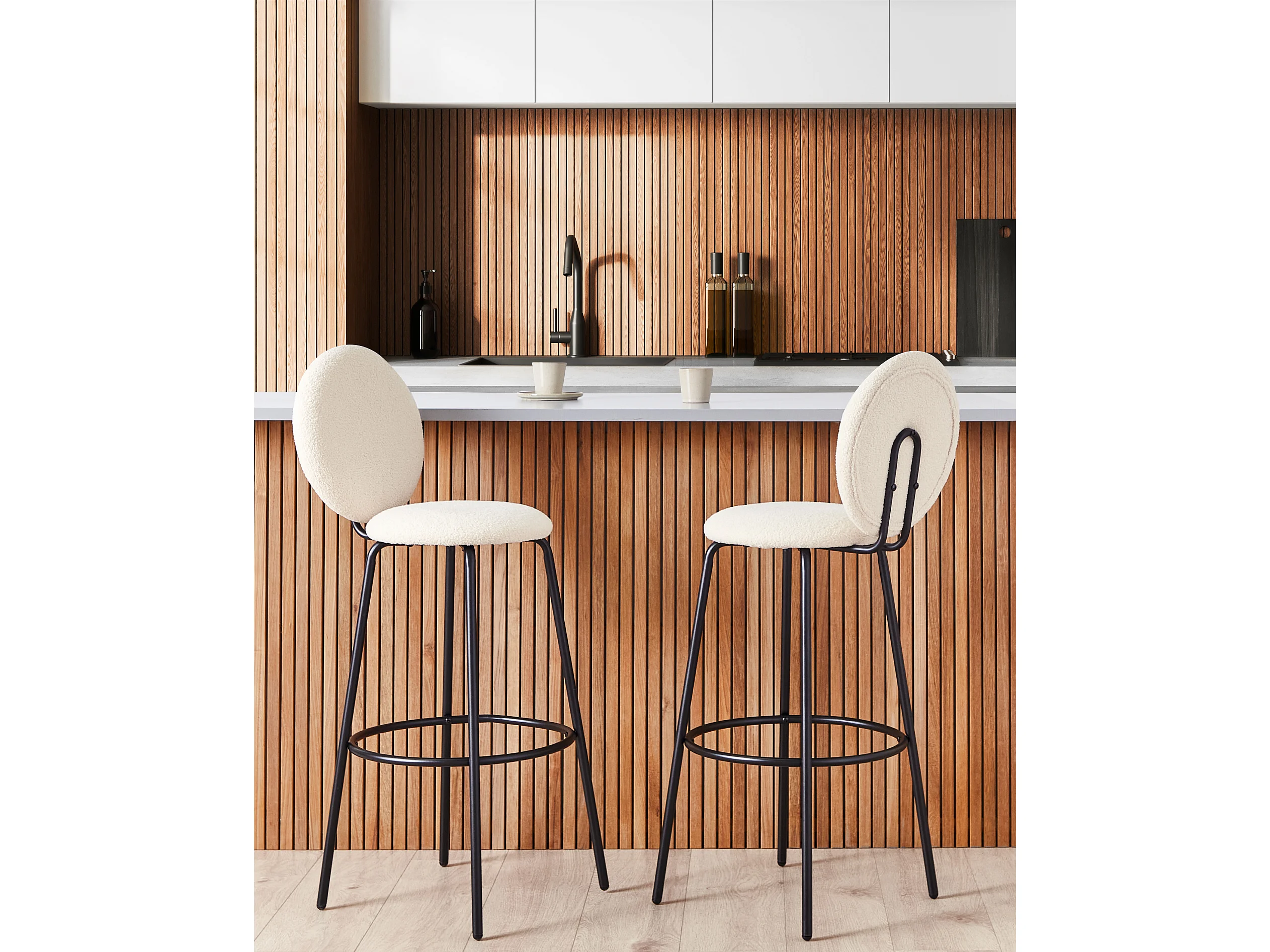 Lot de 2 chaises de bar EMERY Bouclé Beige clair
