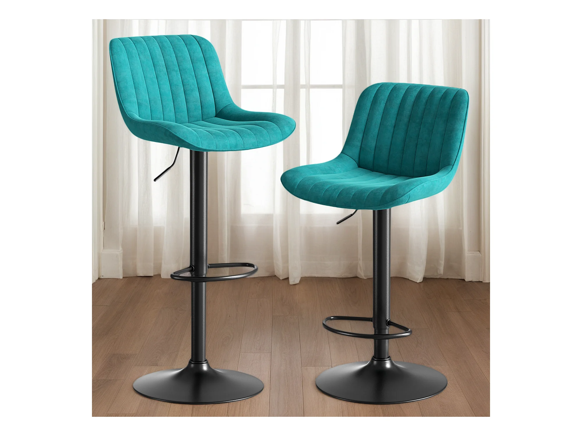Lot de 2 tabourets de bar en velours bleu, pivotants et réglables en hauteur