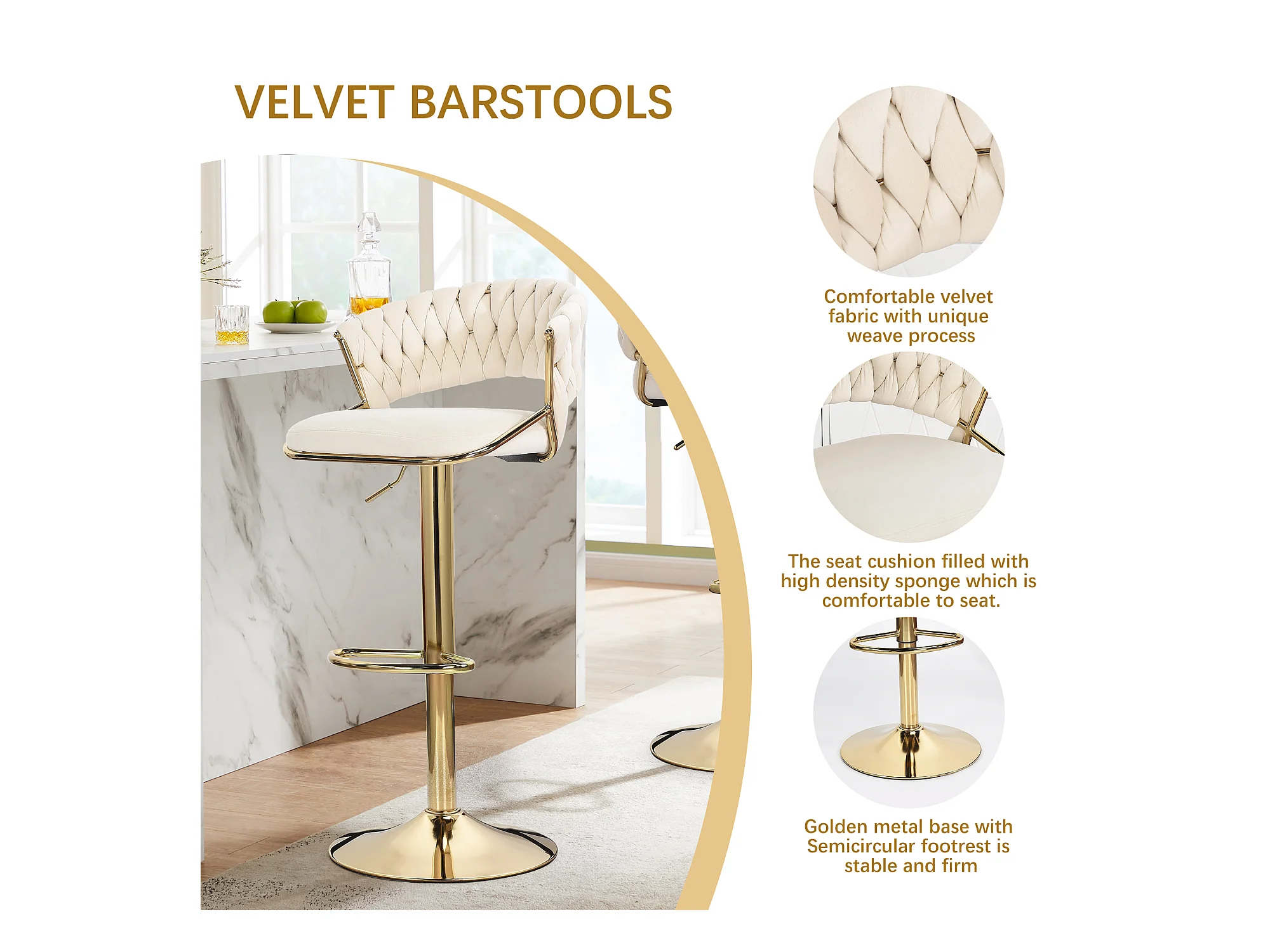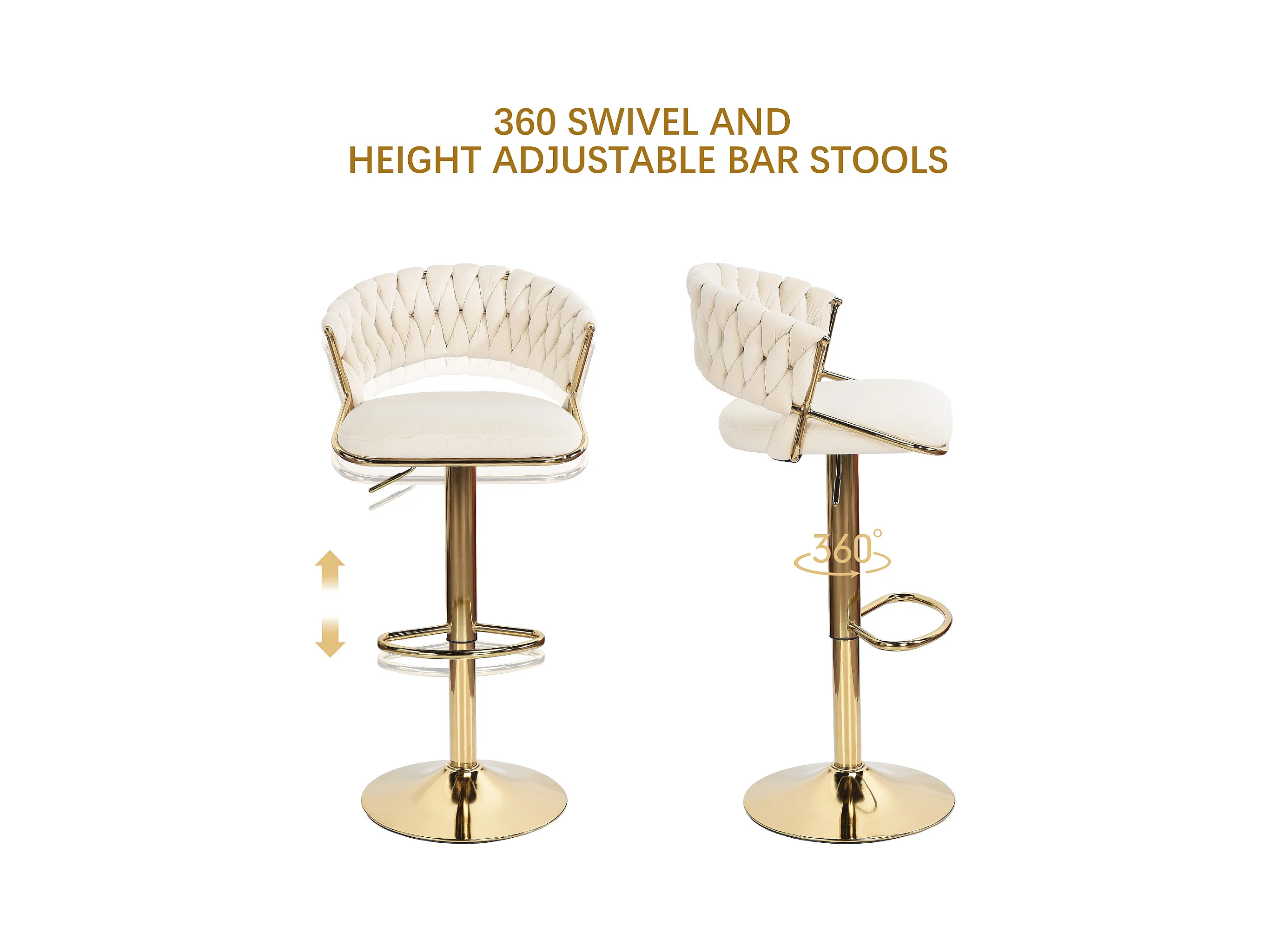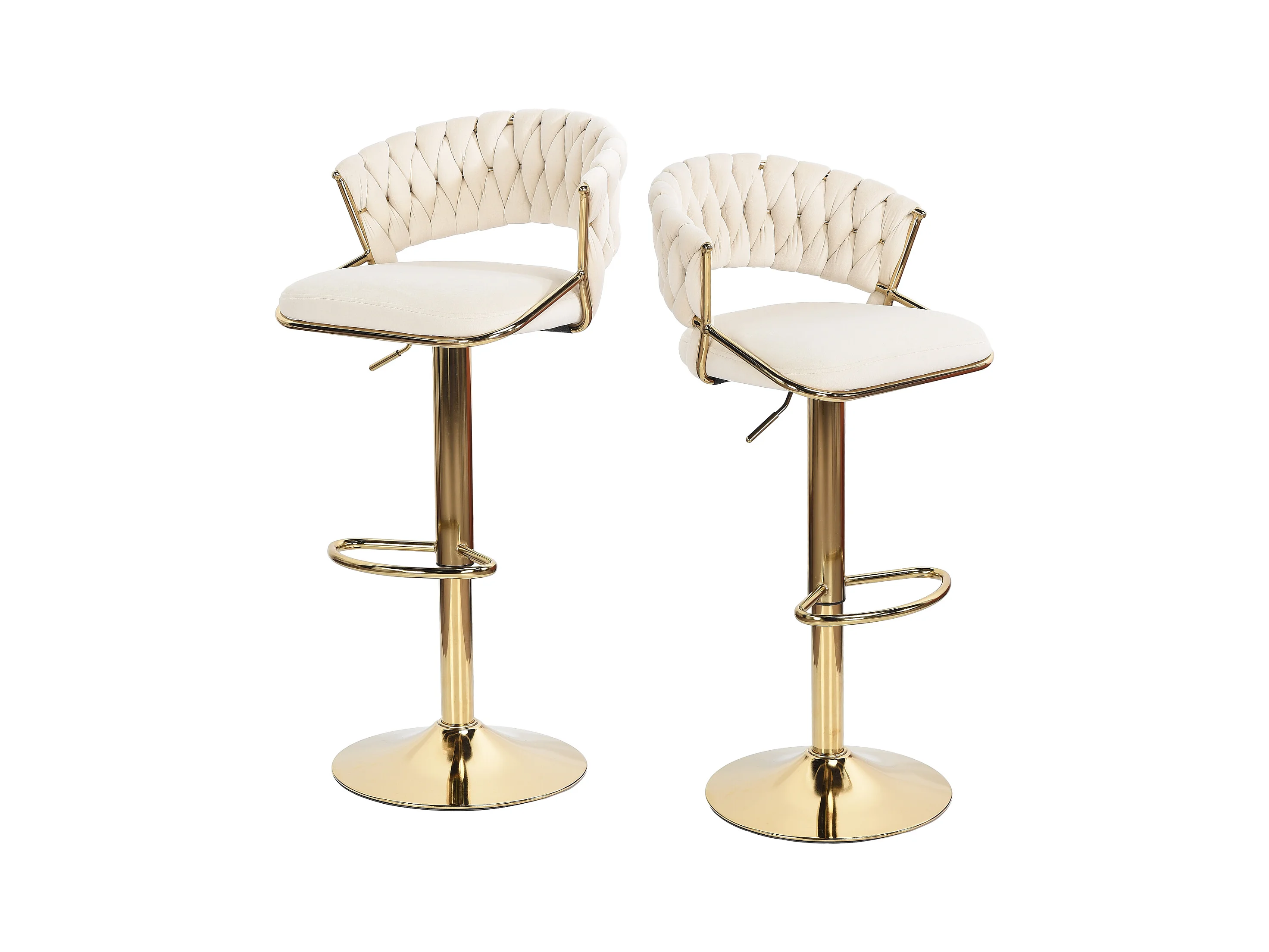 Lot de 2 tabourets de bar en velours chaise bar avec pieds dorés, design ergonomique, pour restaurants, cafés, Bar, beige