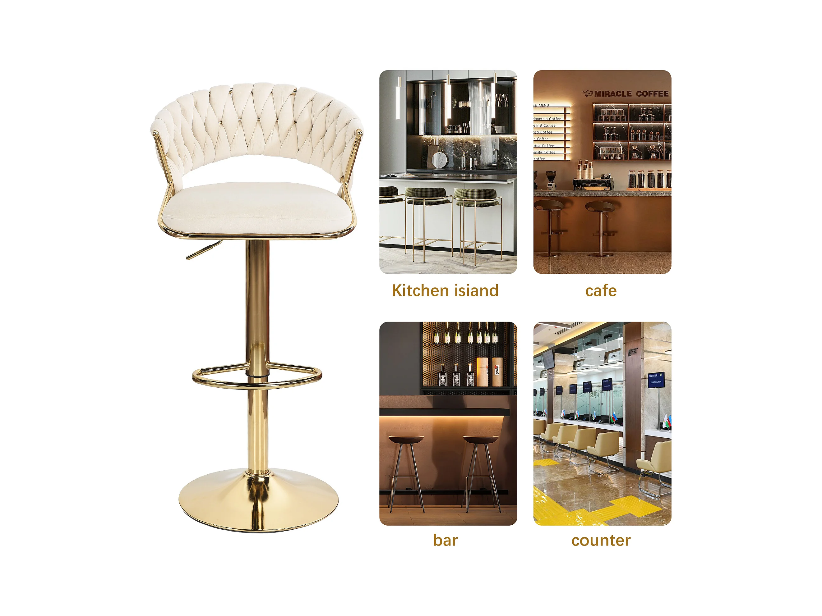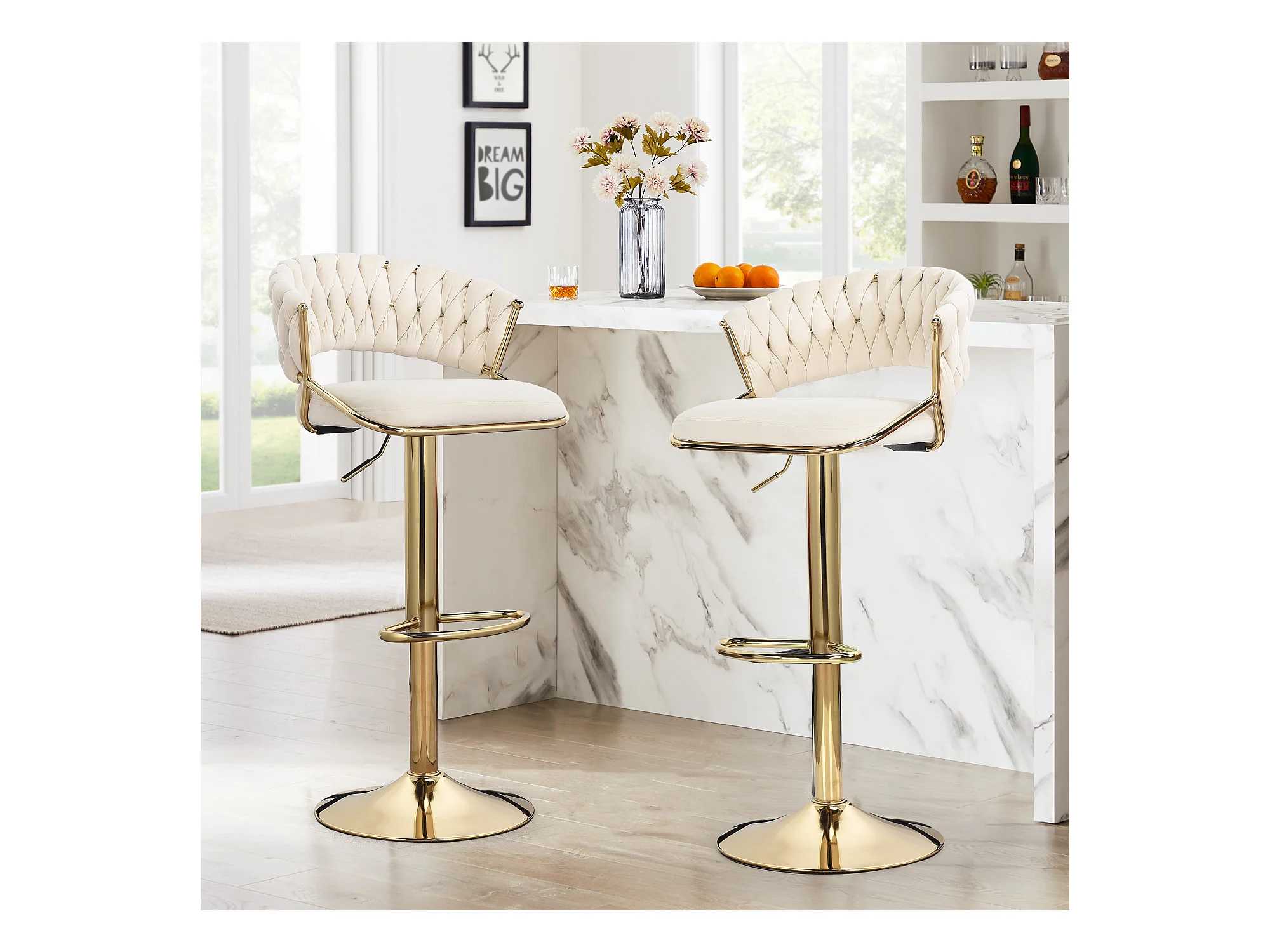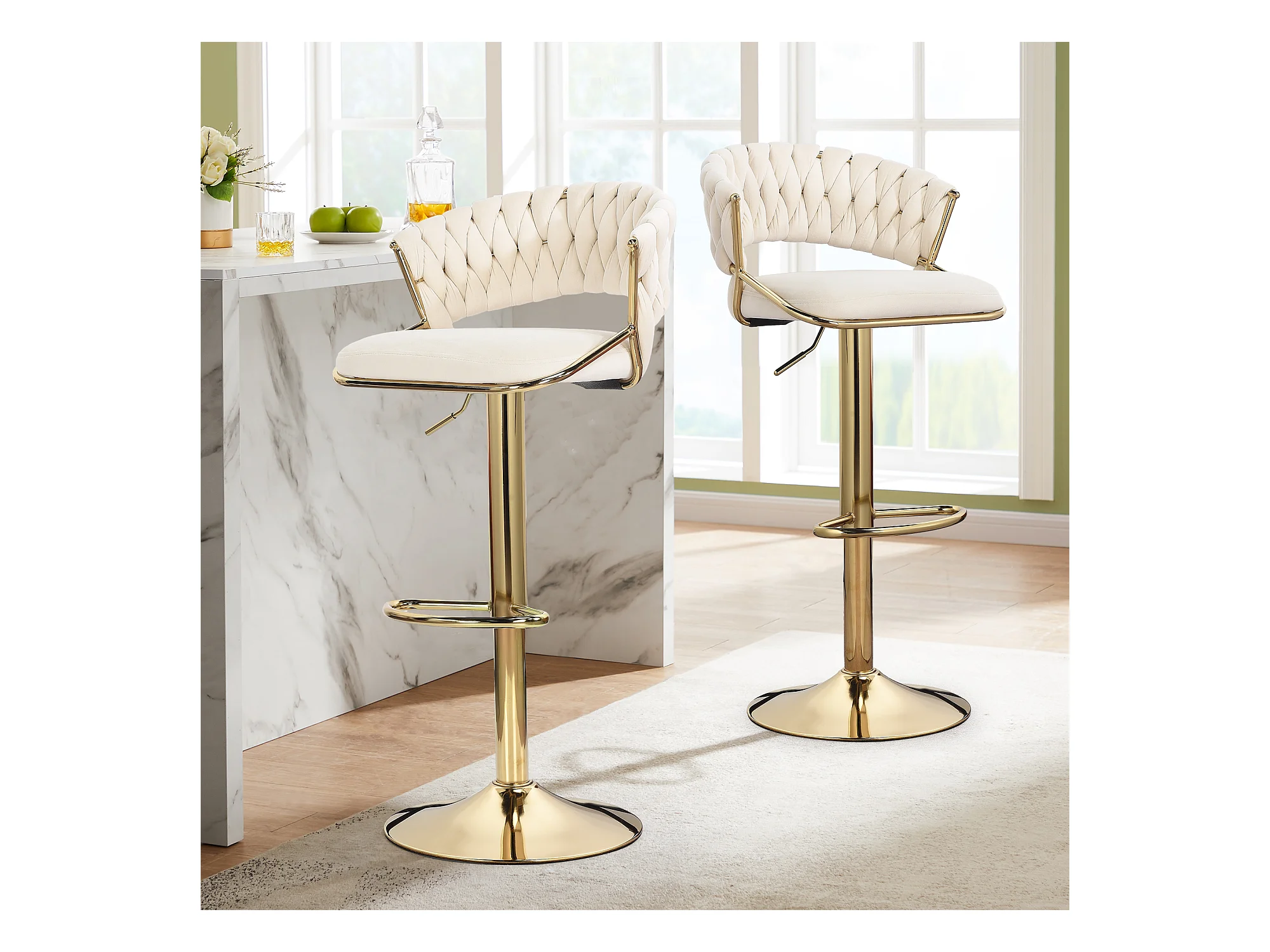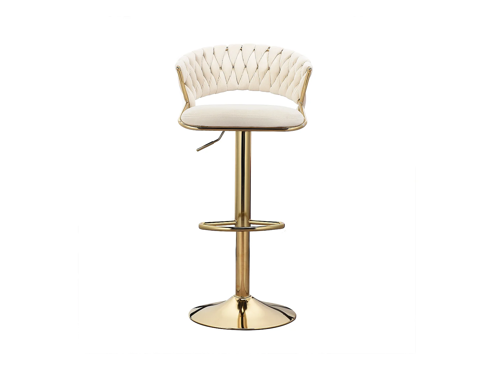 Lot de 2 tabourets de bar en velours chaise bar avec pieds dorés, design ergonomique, pour restaurants, cafés, Bar, beige
