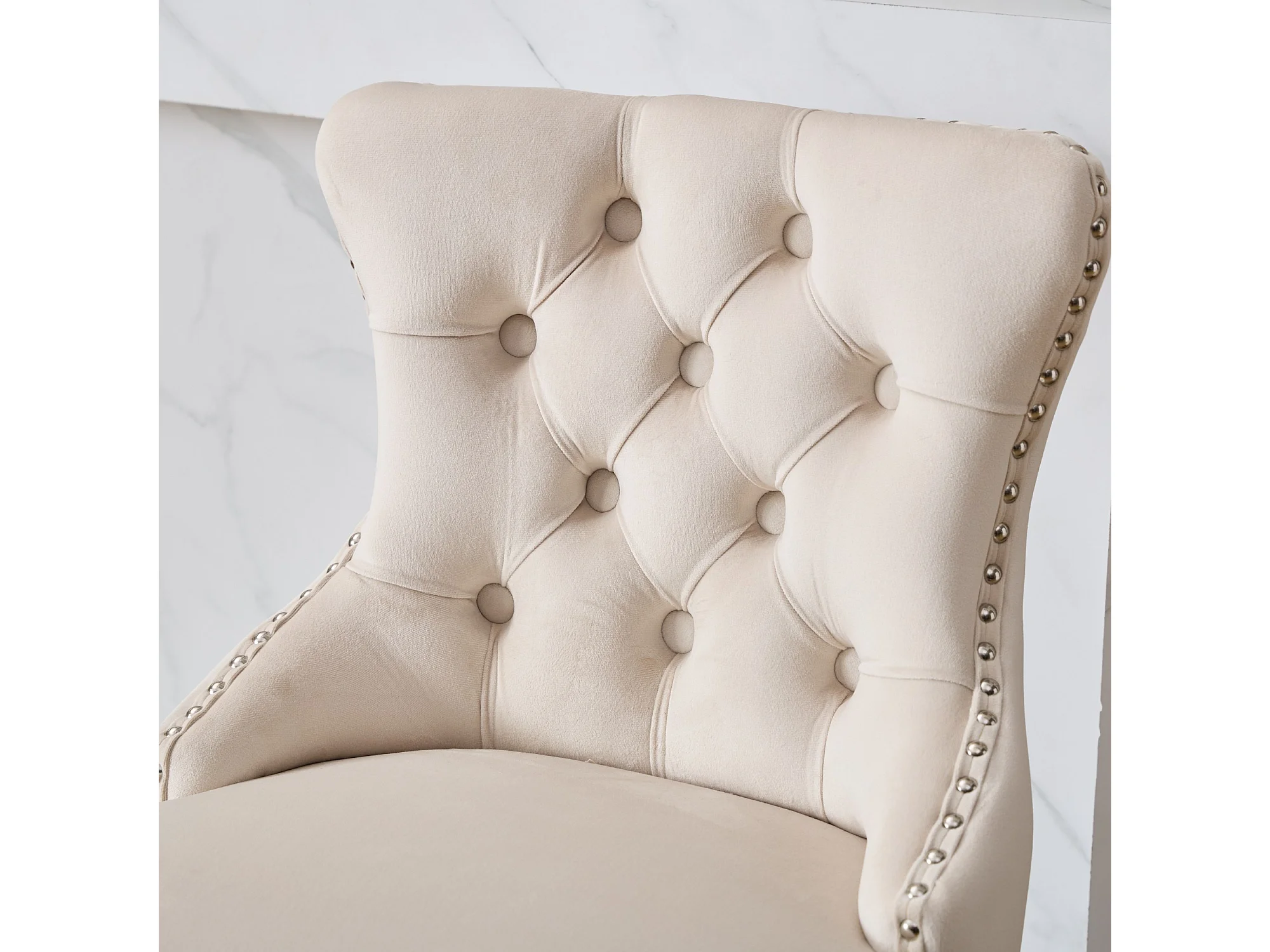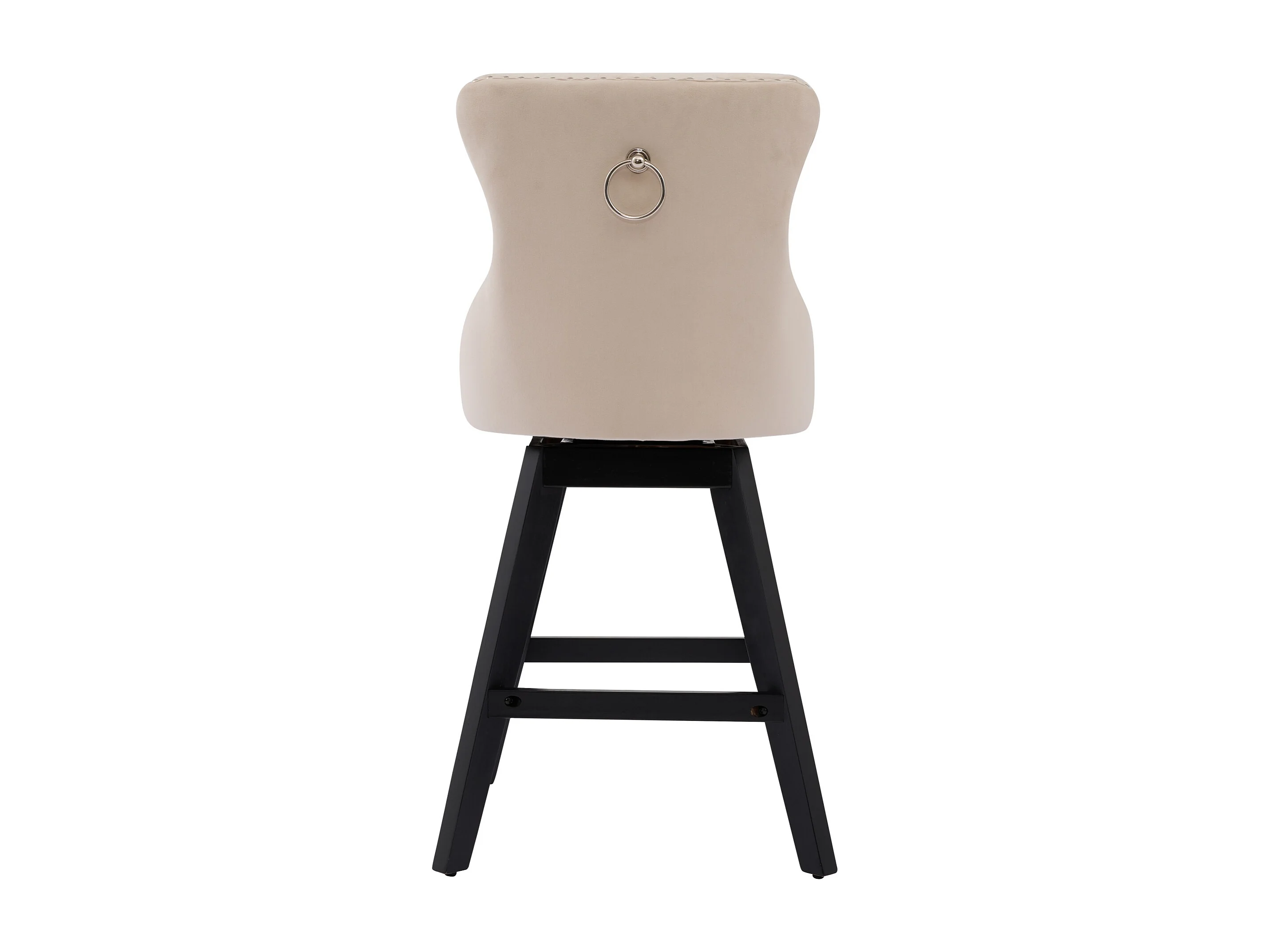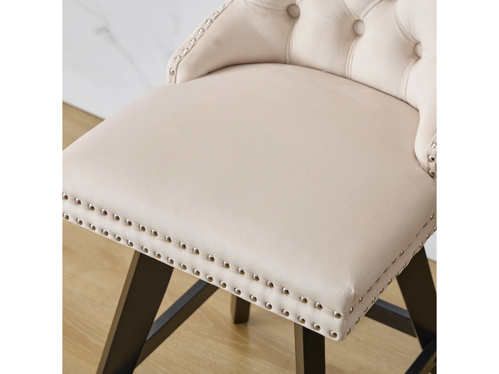 Lot de 2 tabourets de bar en velours - Pieds en bois - Beige
