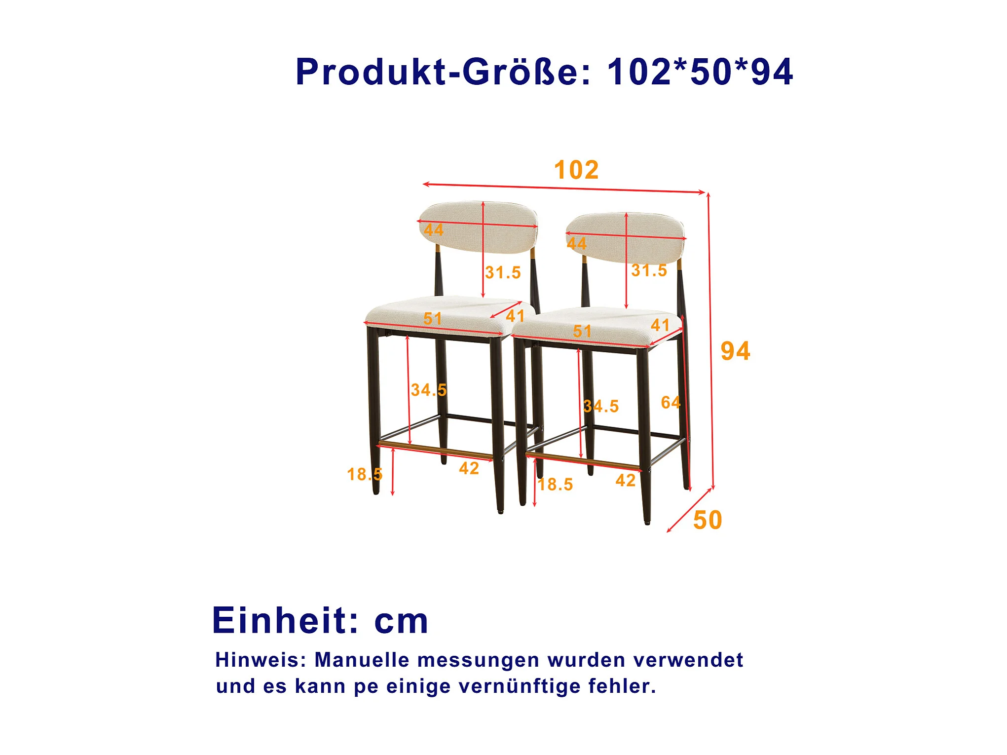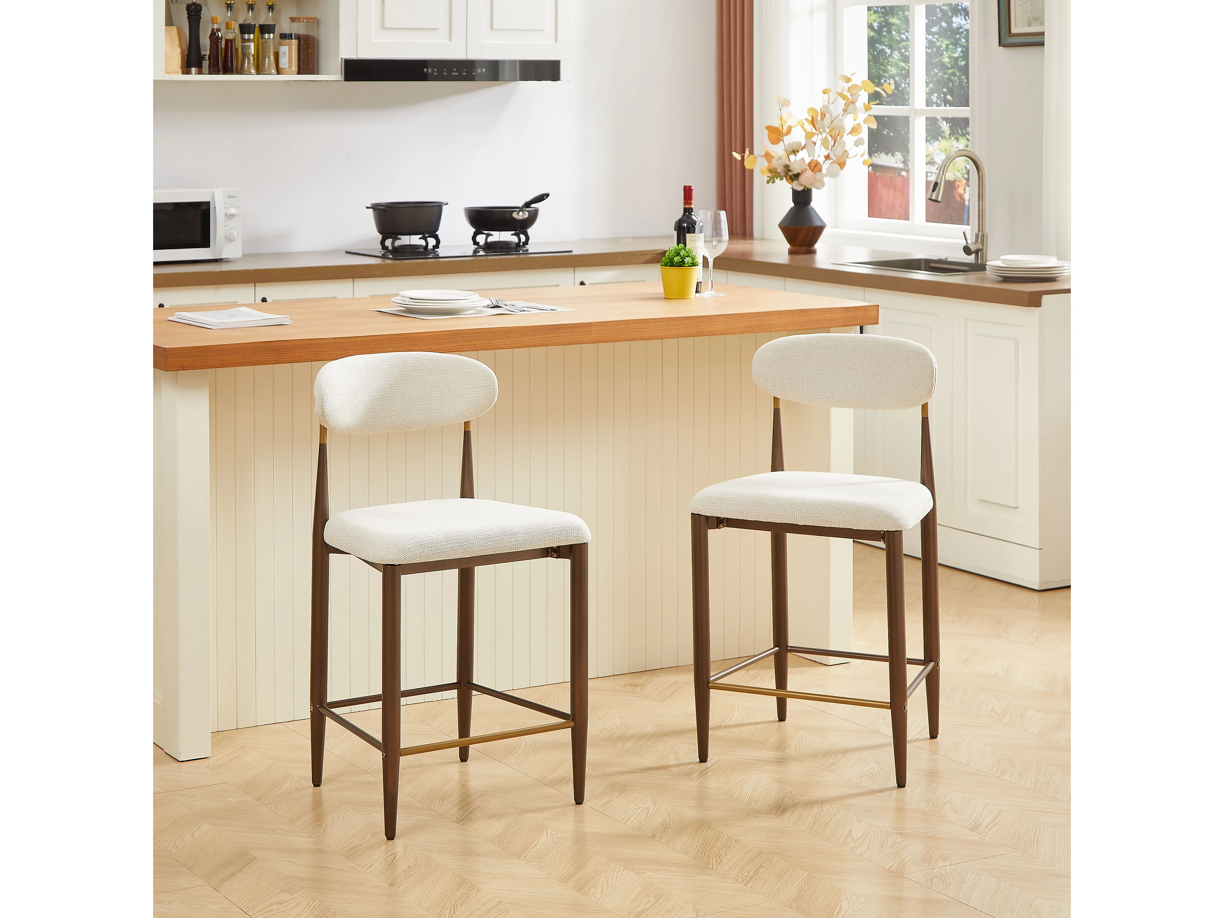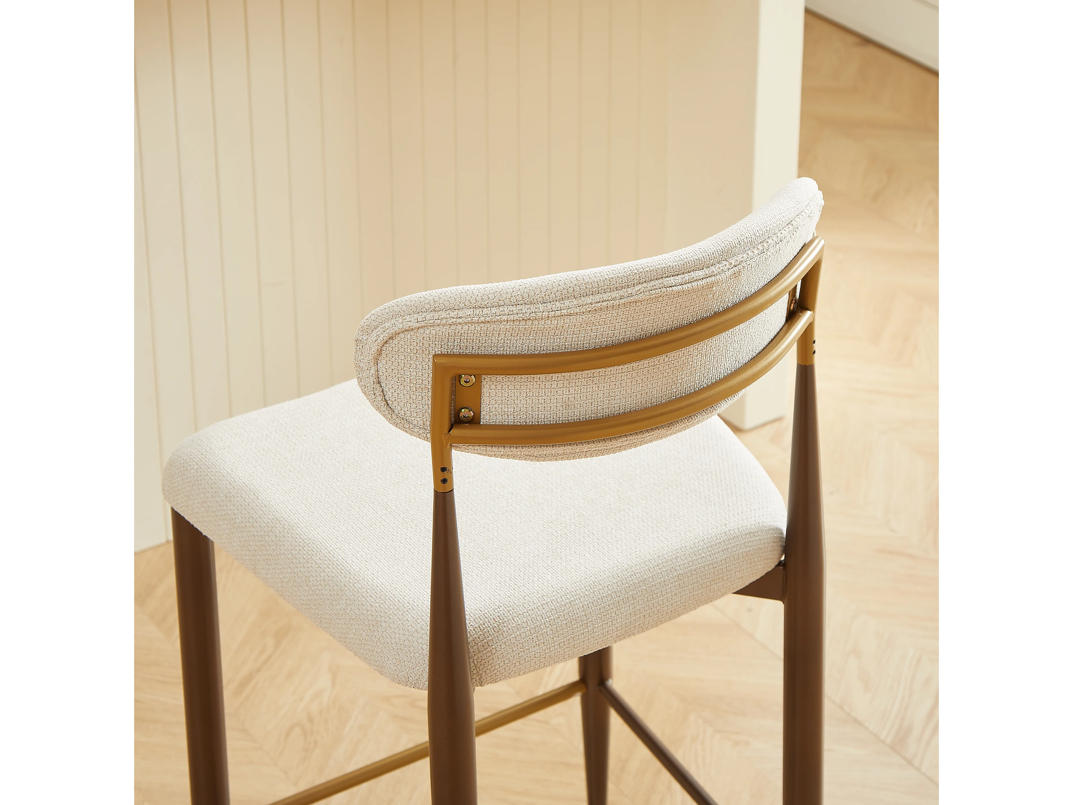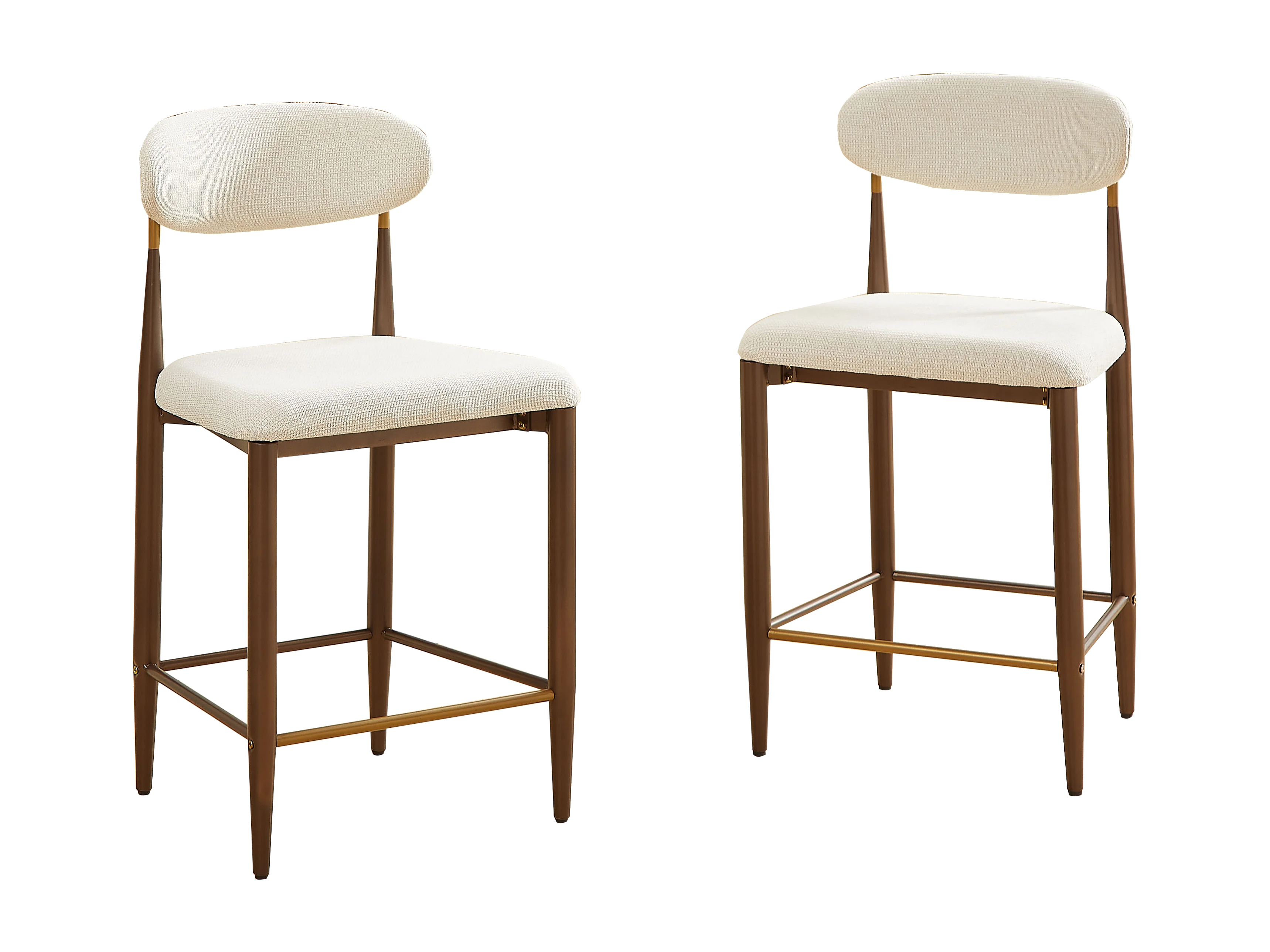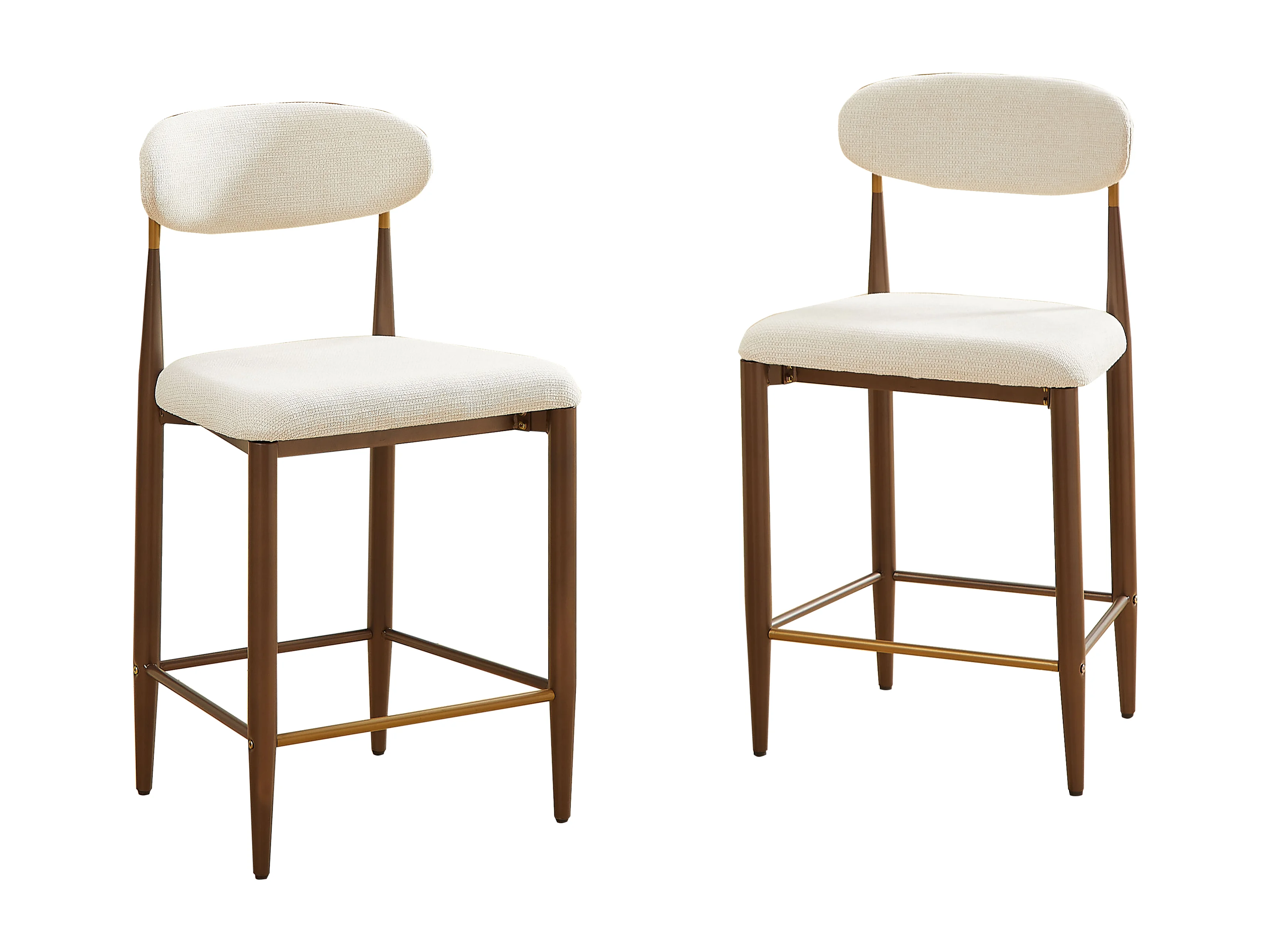 Lot de 2 tabourets de bar hauteur 94cm - Cadre métal brun et doré - Tissu beige