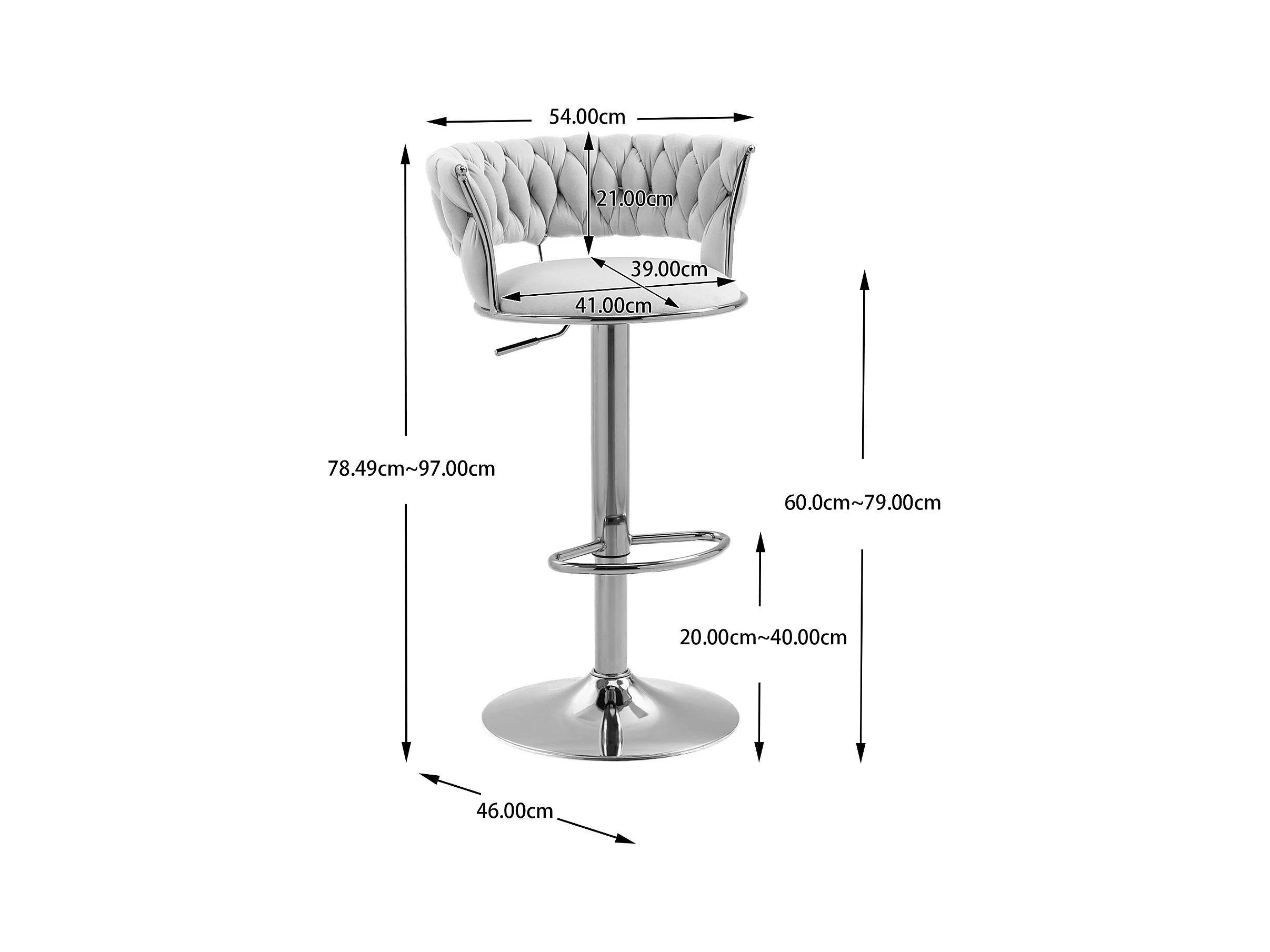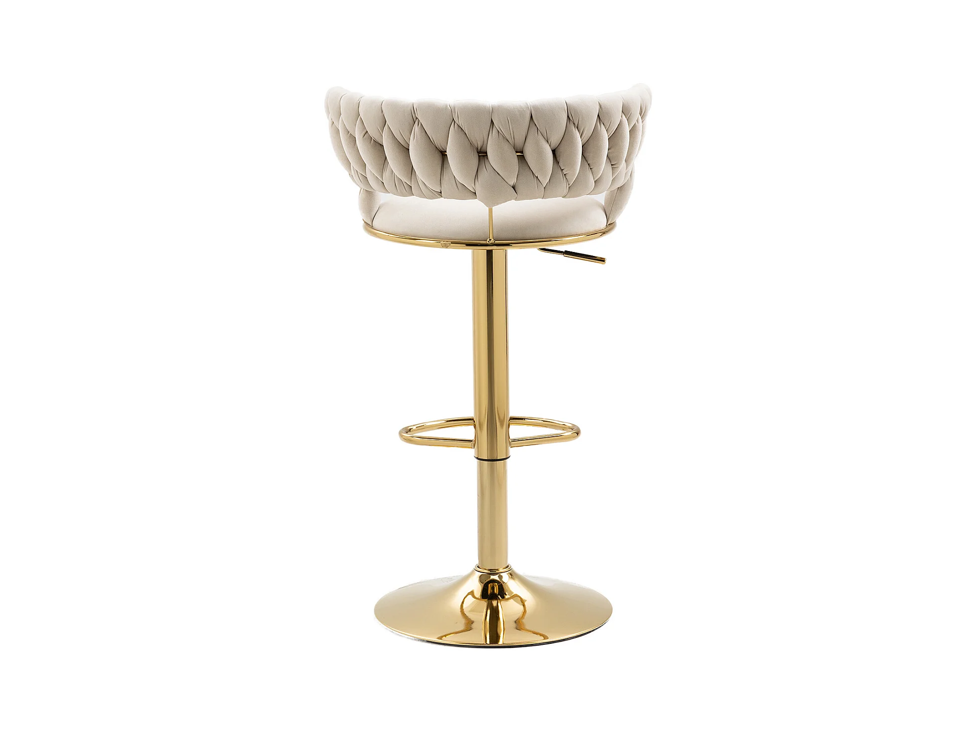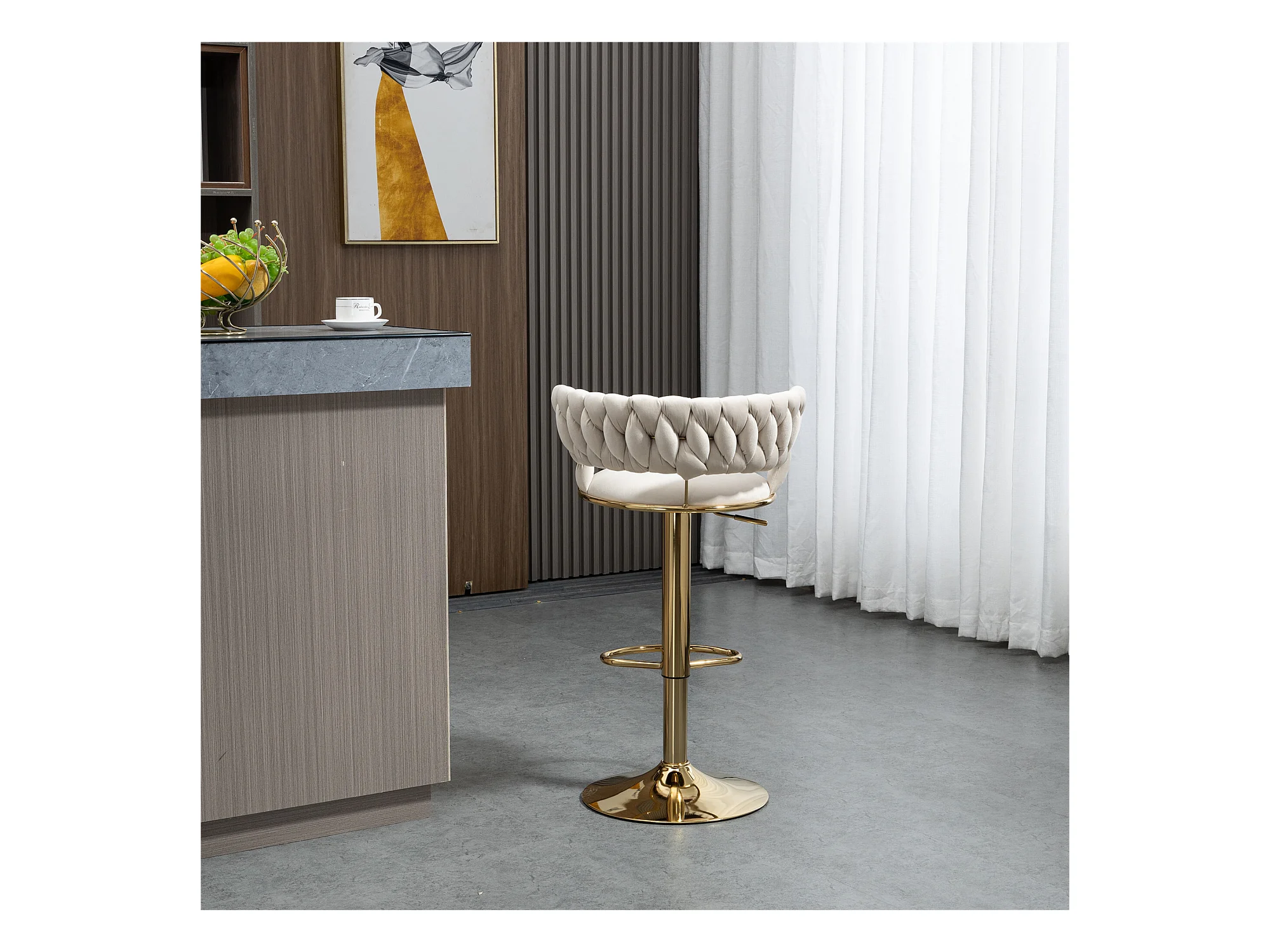 Lot de 2 tabourets de bar pivotants avec dossier, réglables en hauteur – Velours ivoire