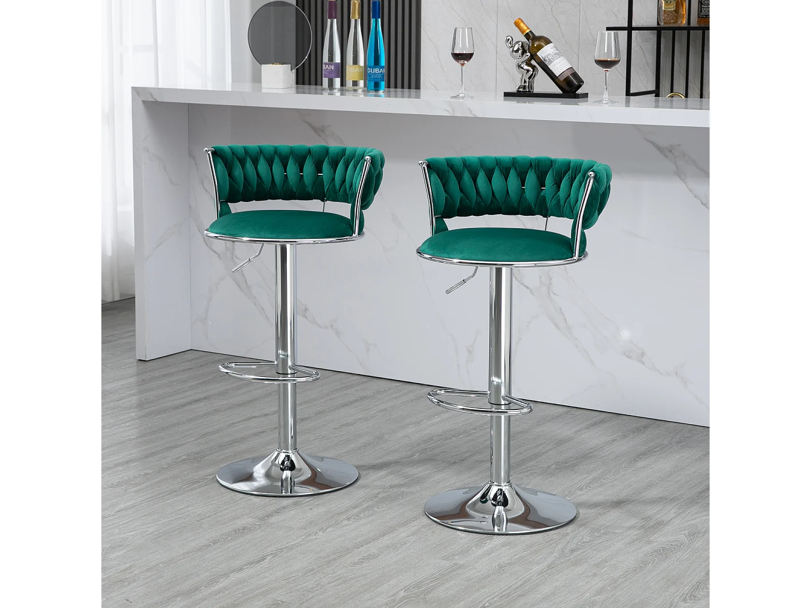 Lot de 2 tabourets de bar pivotants Chaises de comptoir réglables avec repose-pieds pour la cuisine, la salle à manger vert
