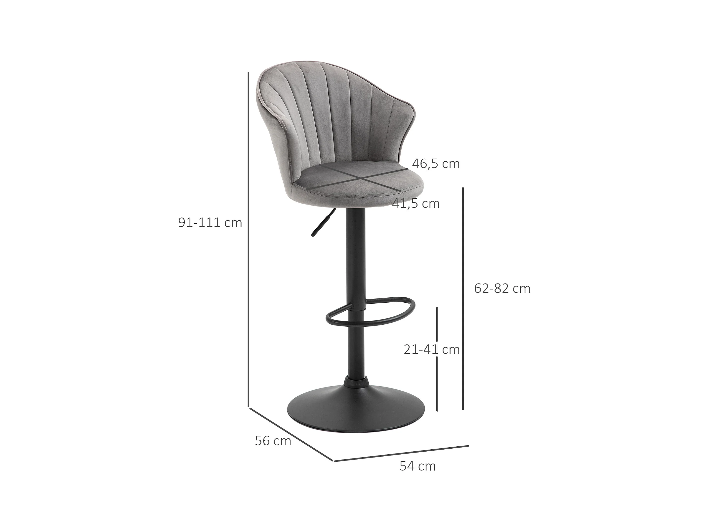 Lot de 2 tabourets de bar pivotants, réglables en hauteur, velours, gris, sans accoudoirs (51.5x57.5x93-114.5cm)