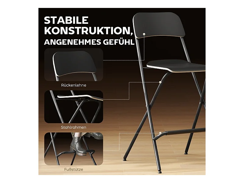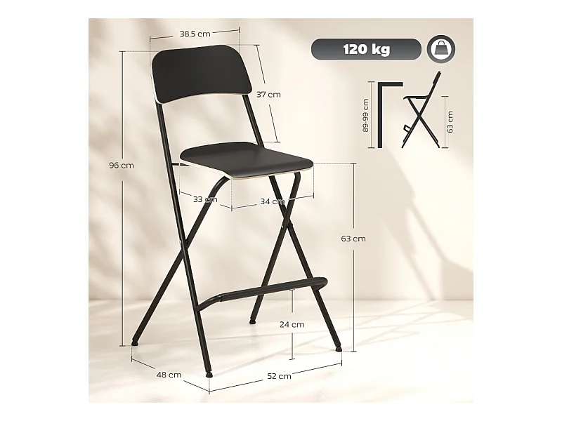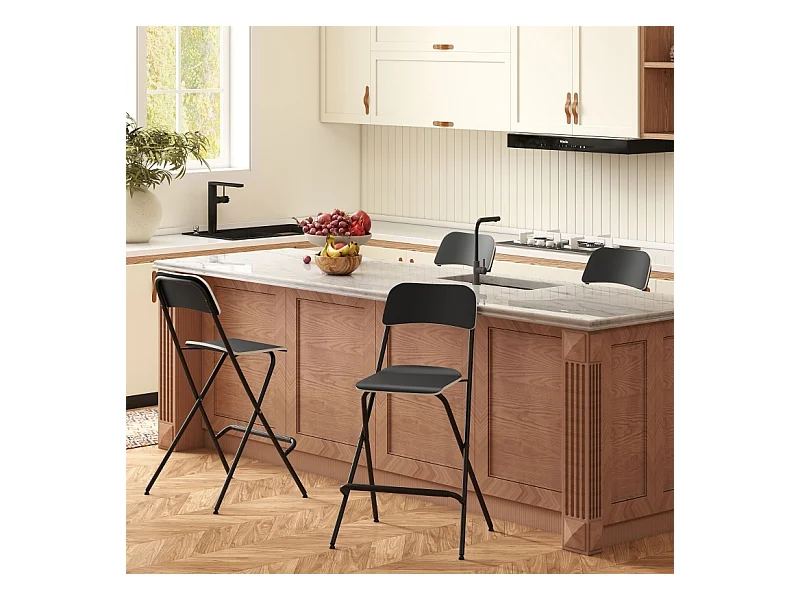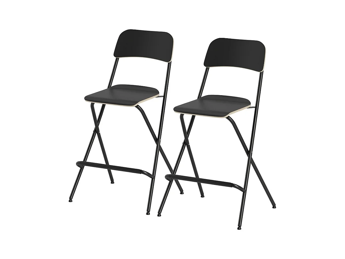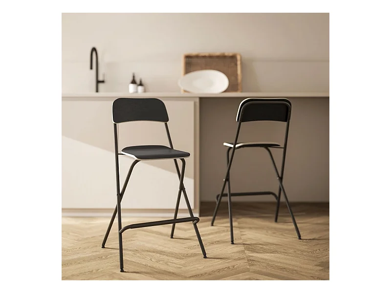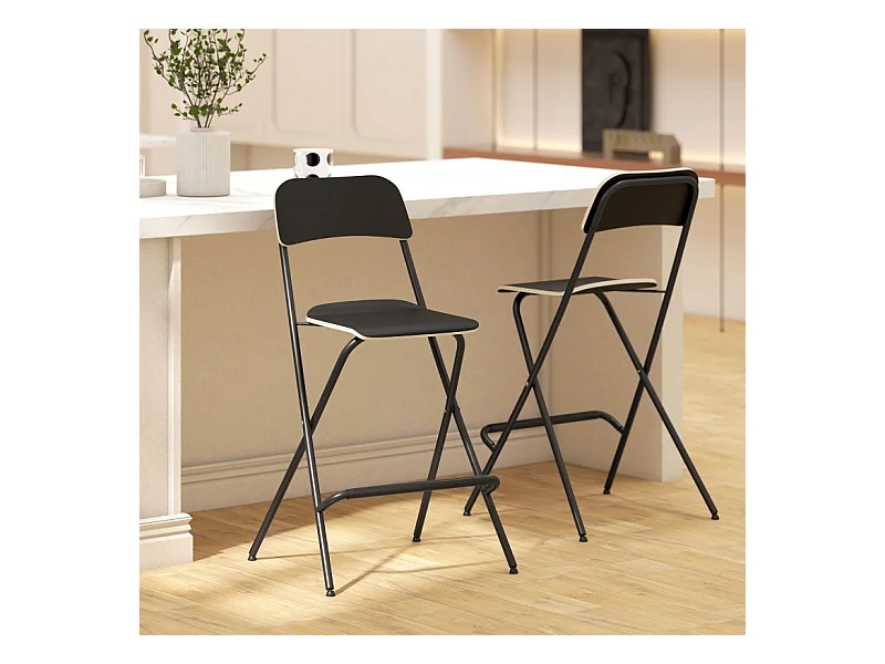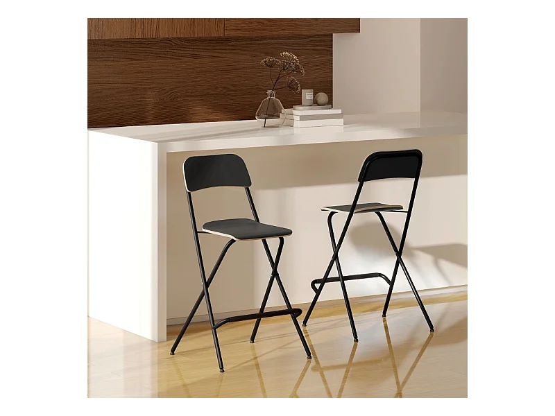 Lot de 2 tabourets de bar pliants avec structure en acier pour cuisine et salle à manger, noir