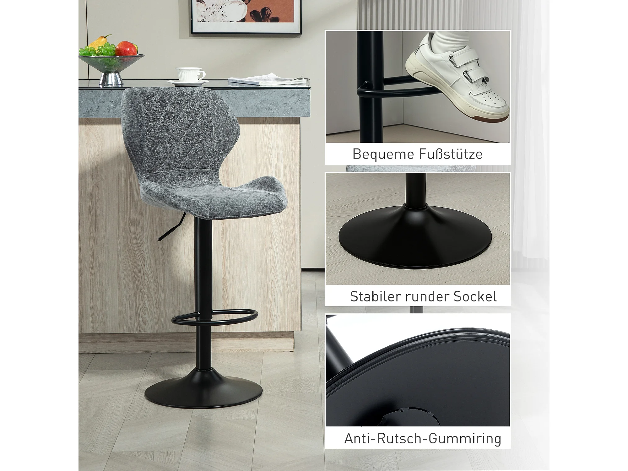 Lot de 2 tabourets de bar, réglables en hauteur et pivotants, rembourrés avec dossier, aspect chenille, repose-pieds, gris foncé