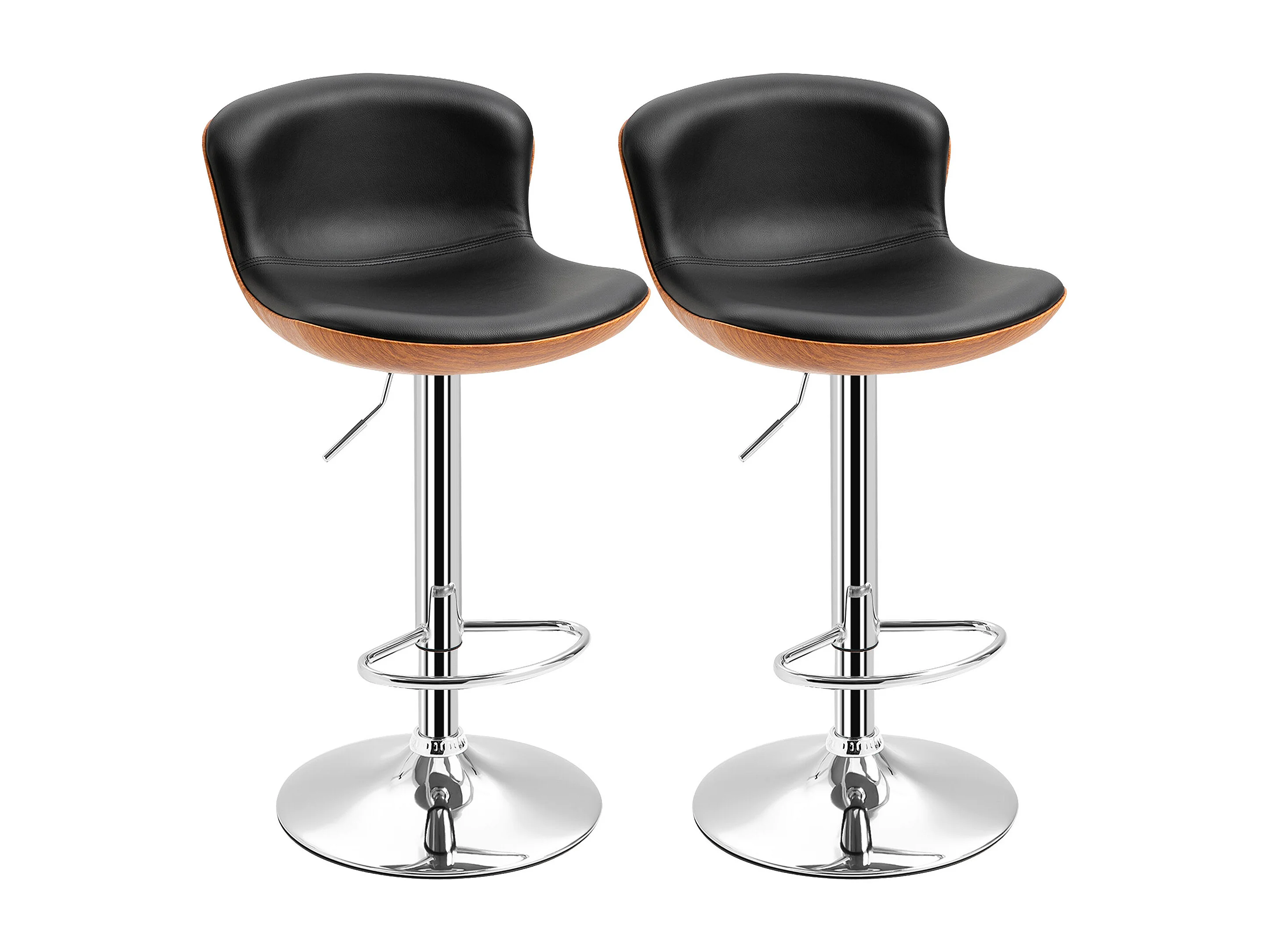Lot de 2 tabourets de bar, design rétro, réglables en hauteur, rotatifs à 360°, cuir noir