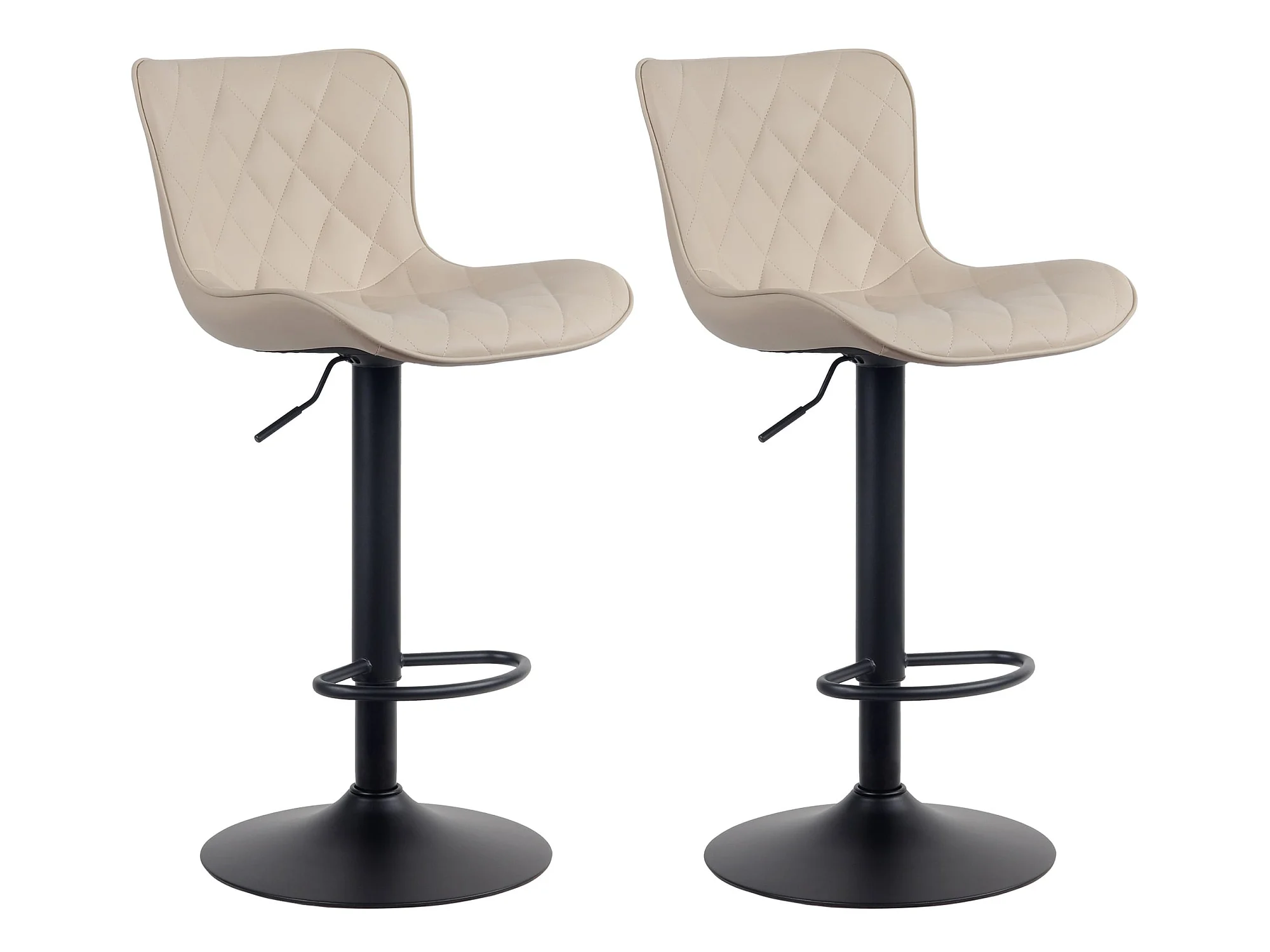 Lot de 2 Tabourets de bar - Similicuir (PVC) & Métal noir mat - Crème - Braga