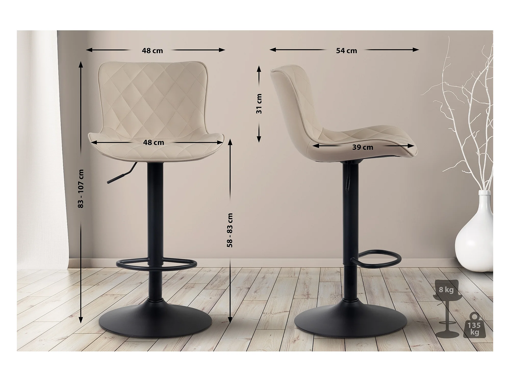 Lot de 2 Tabouret de bar - Similicuir & Noir - Crème - Köln