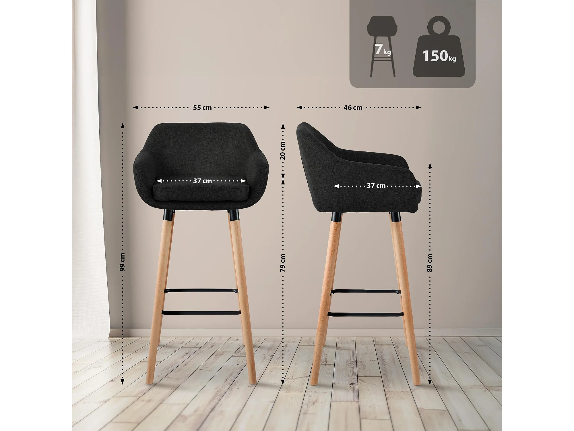 Lot de 2 Tabouret de bar - Tissu - Noir - Grant