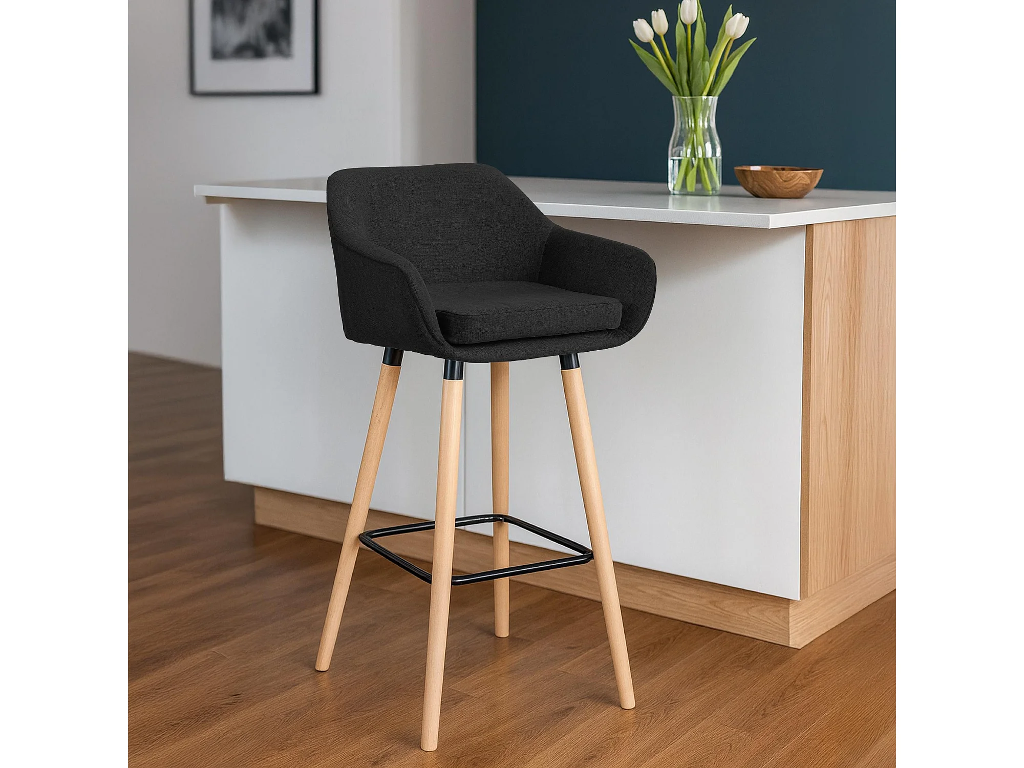 Tabouret de bar - Tissu & Noir - Noir - Lincoln