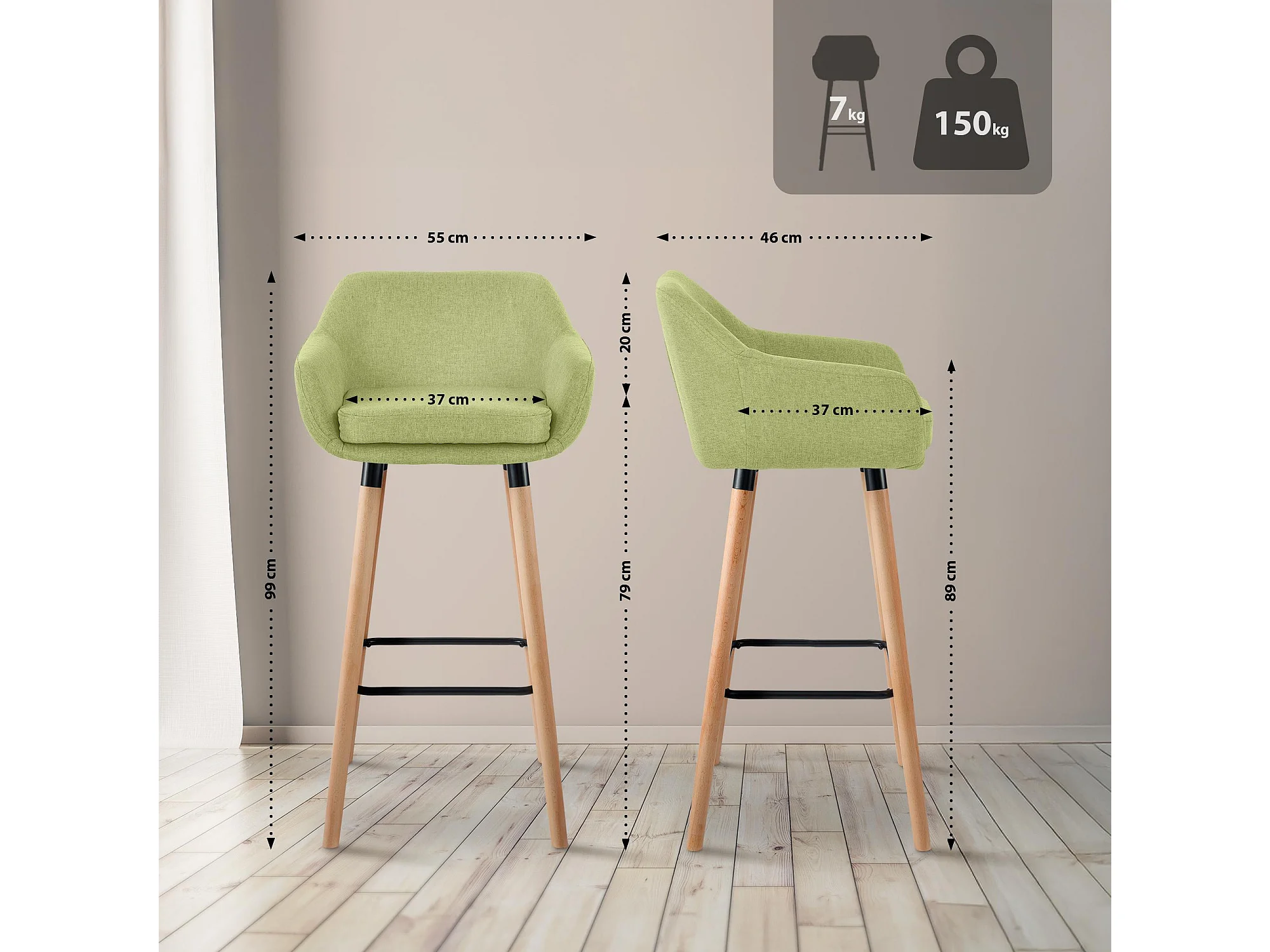 Lot de 2 Tabouret de bar - Tissu & Bois - Vert - Metz