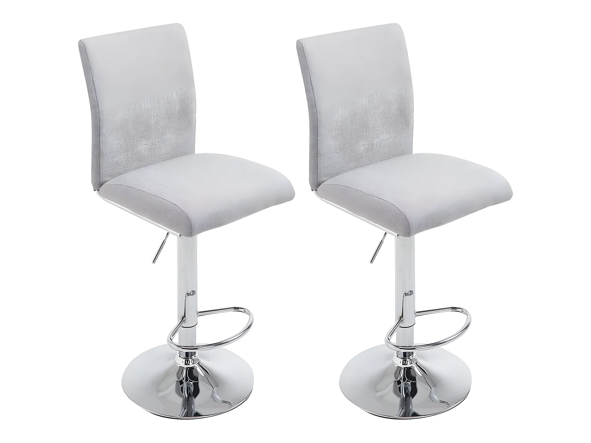 Lot de 2 Tabourets de bar - Tissu & Métal chromé - Gris clair - Köln