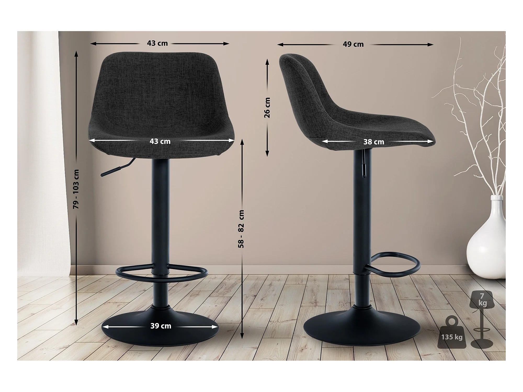 Lot de 2 Tabouret de bar - Tissu - Noir - Loft
