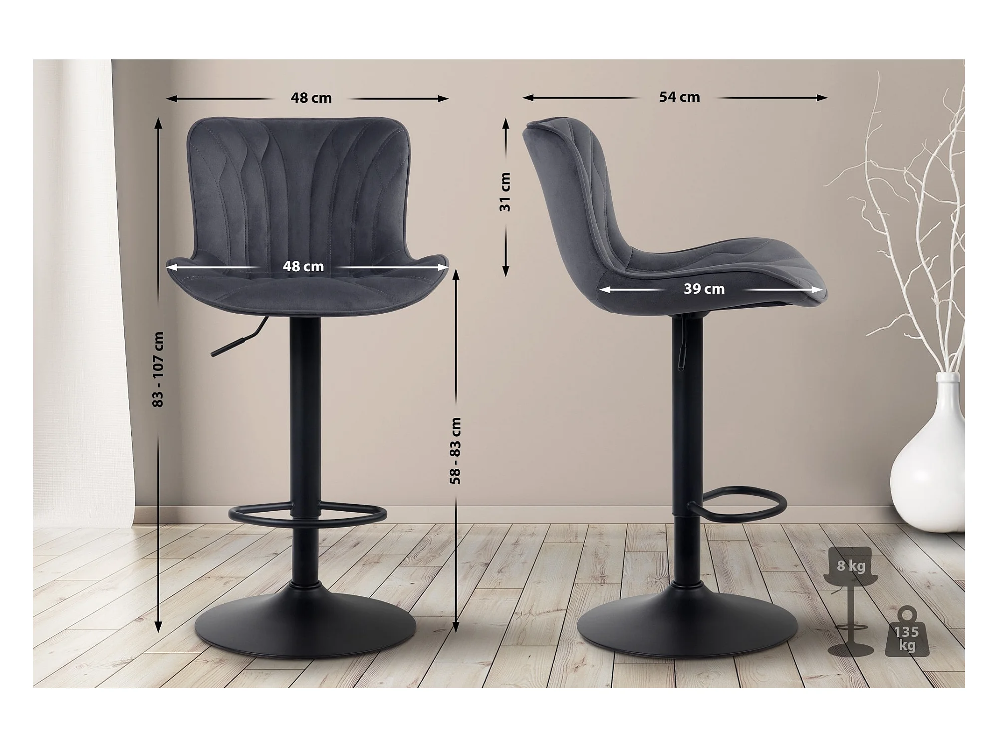 Tabouret de bar - Velours & Noir - Noir - Toni