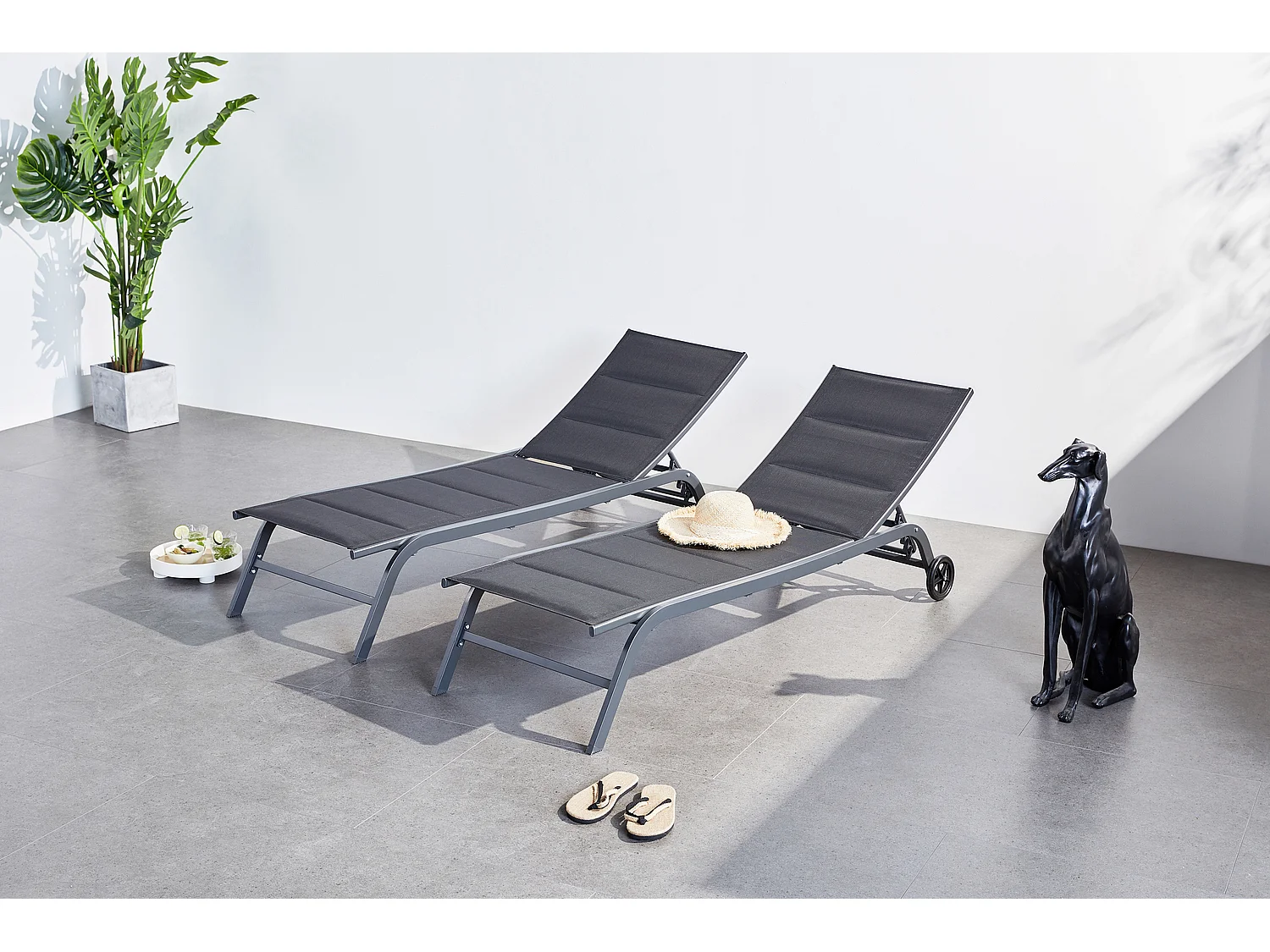 Lot de 2 transats inclinables avec roulettes en aluminium noir CUBA