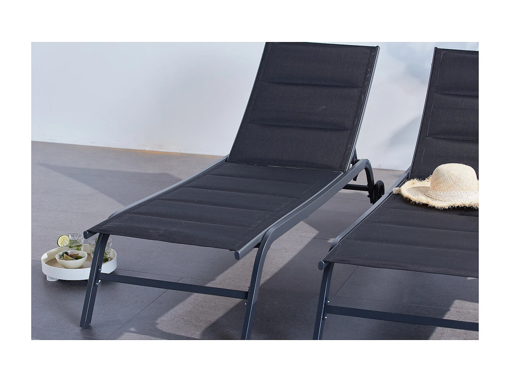 Lot de 2 transats GALAPAGOS en textilène noir - aluminium gris - HAPPY GARDEN