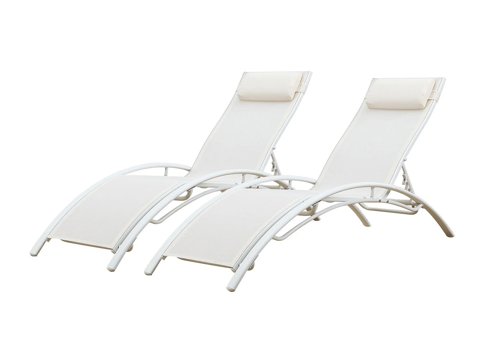Lot de 2 transats GALAPAGOS en textilène blanc - aluminium blanc - HAPPY GARDEN