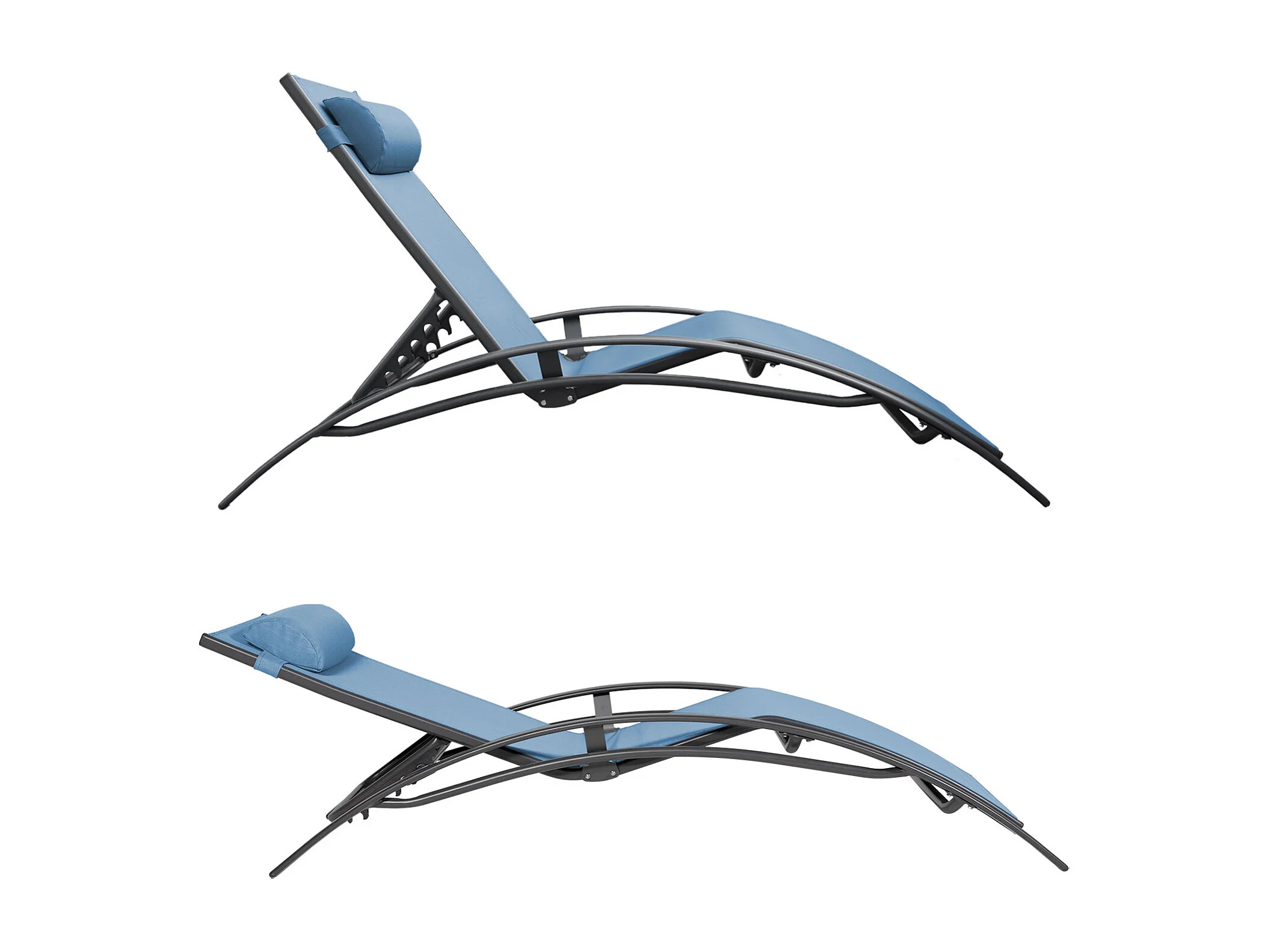 Lot de 2 transats GALAPAGOS en textilène bleu gris - aluminium gris anthracite - HAPPY GARDEN