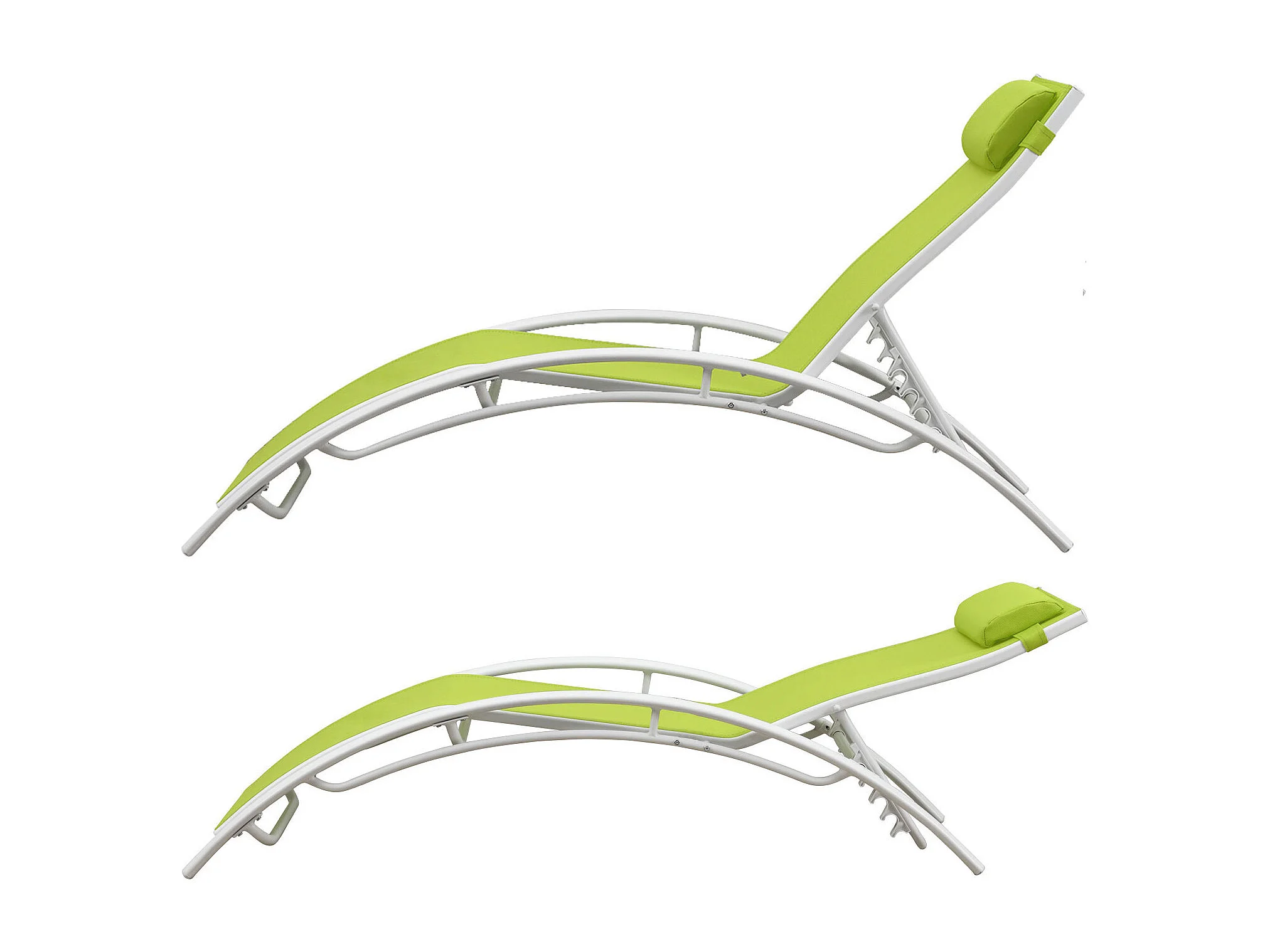 Lot de 2 transats GALAPAGOS en textilène vert - aluminium blanc - HAPPY GARDEN