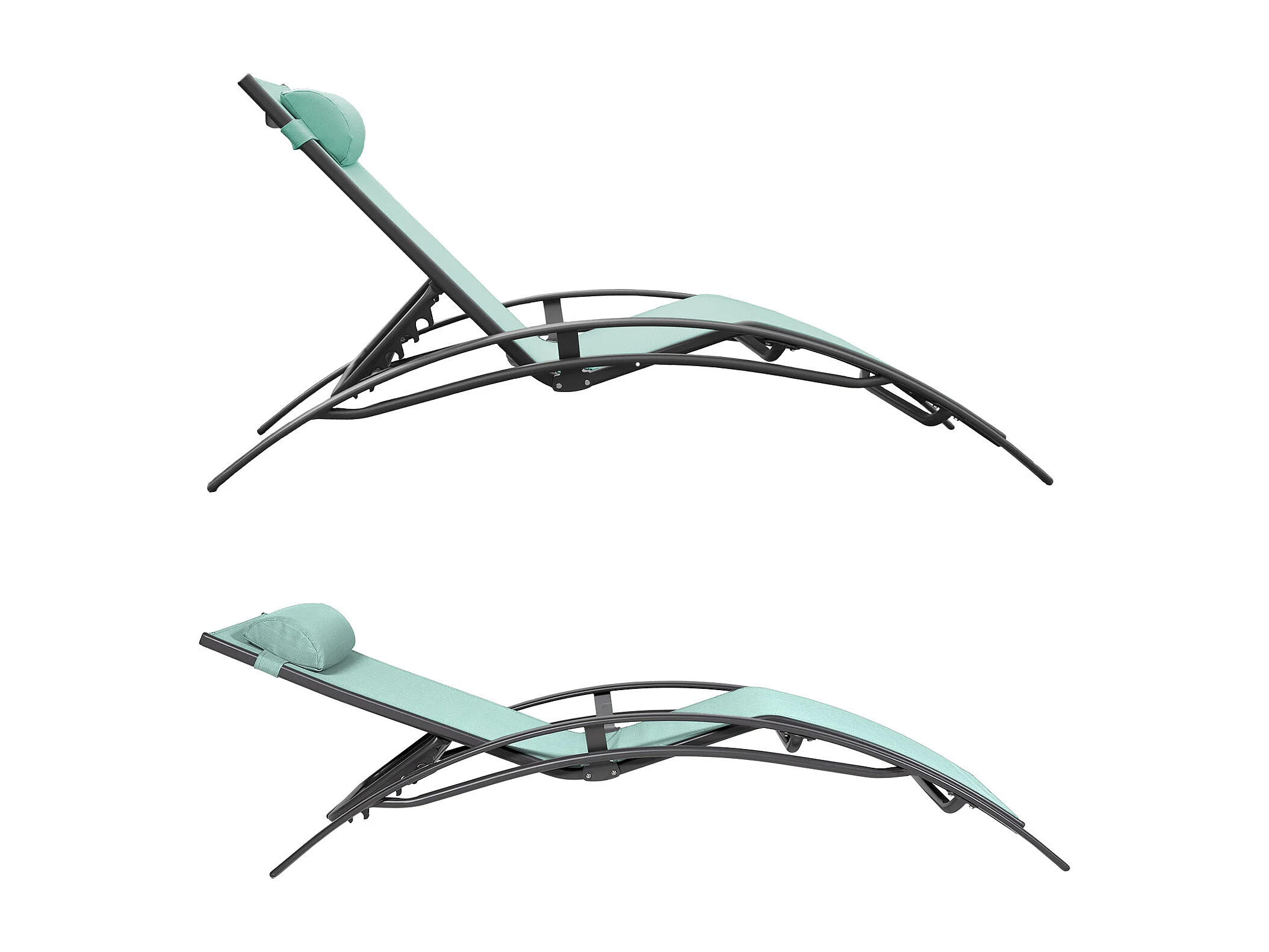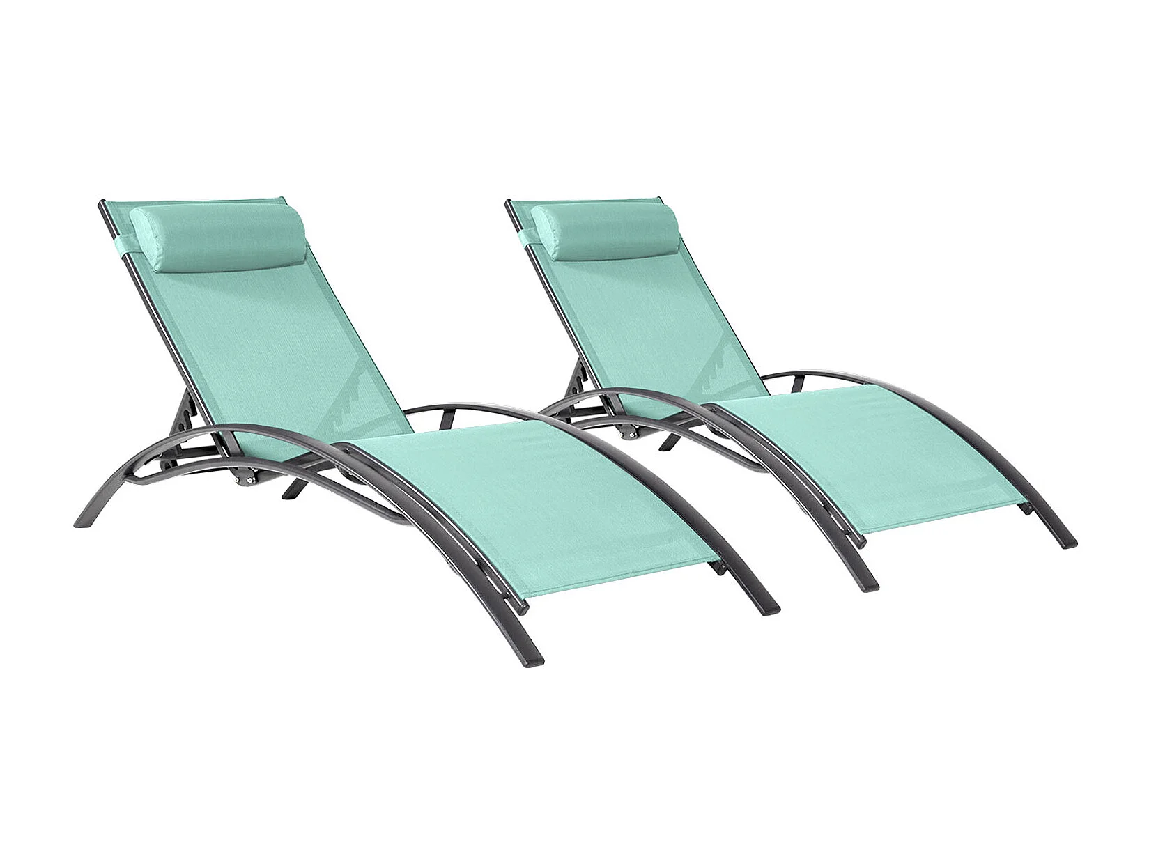Lot de 2 transats GALAPAGOS en textilène vert d'eau - aluminium gris anthracite - HAPPY GARDEN