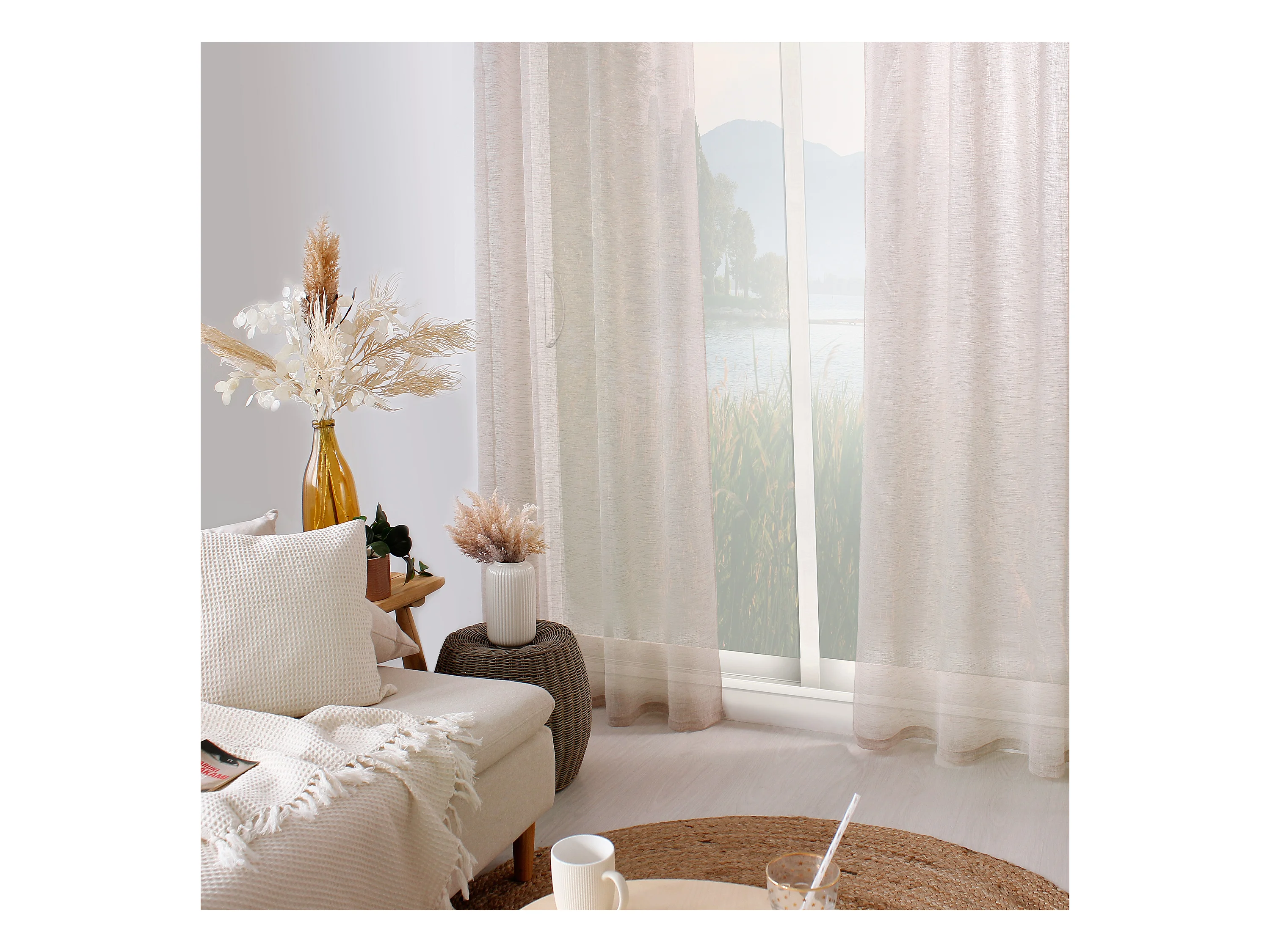 Lot de 2 voilages à œillets, 140x240cm, beige naturel, effet lin, collection Maya