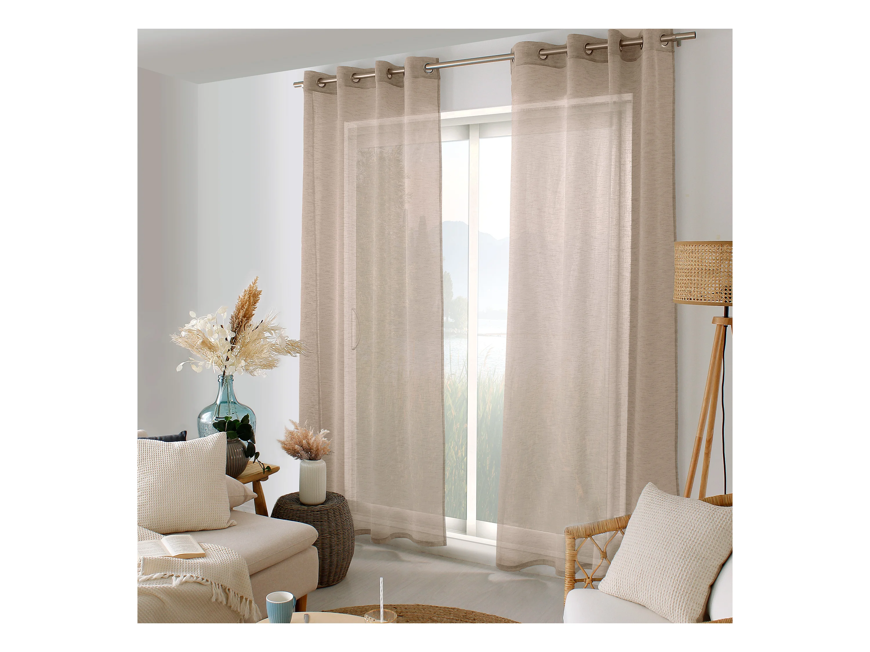 Lot de 2 voilages à œillets, 140x240cm, marron vison, effet lin, collection Maya