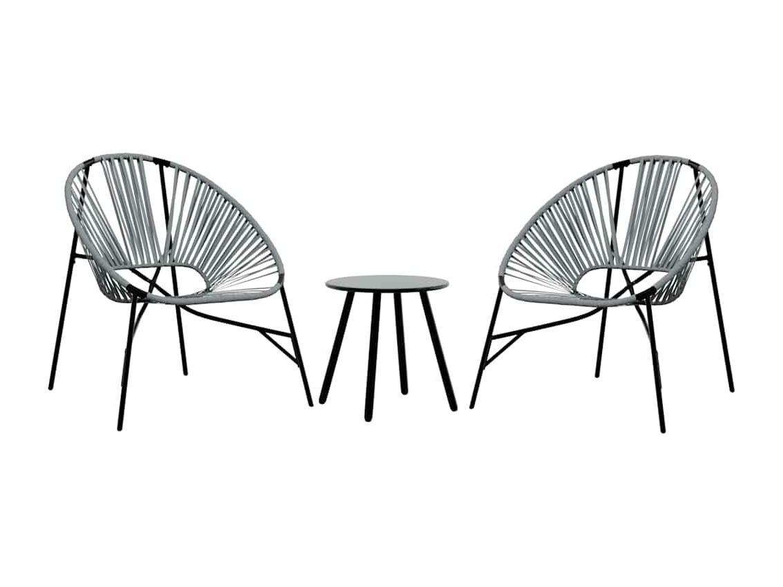Lot de 3 Chaise de jardin noir et gris clair résine tressée